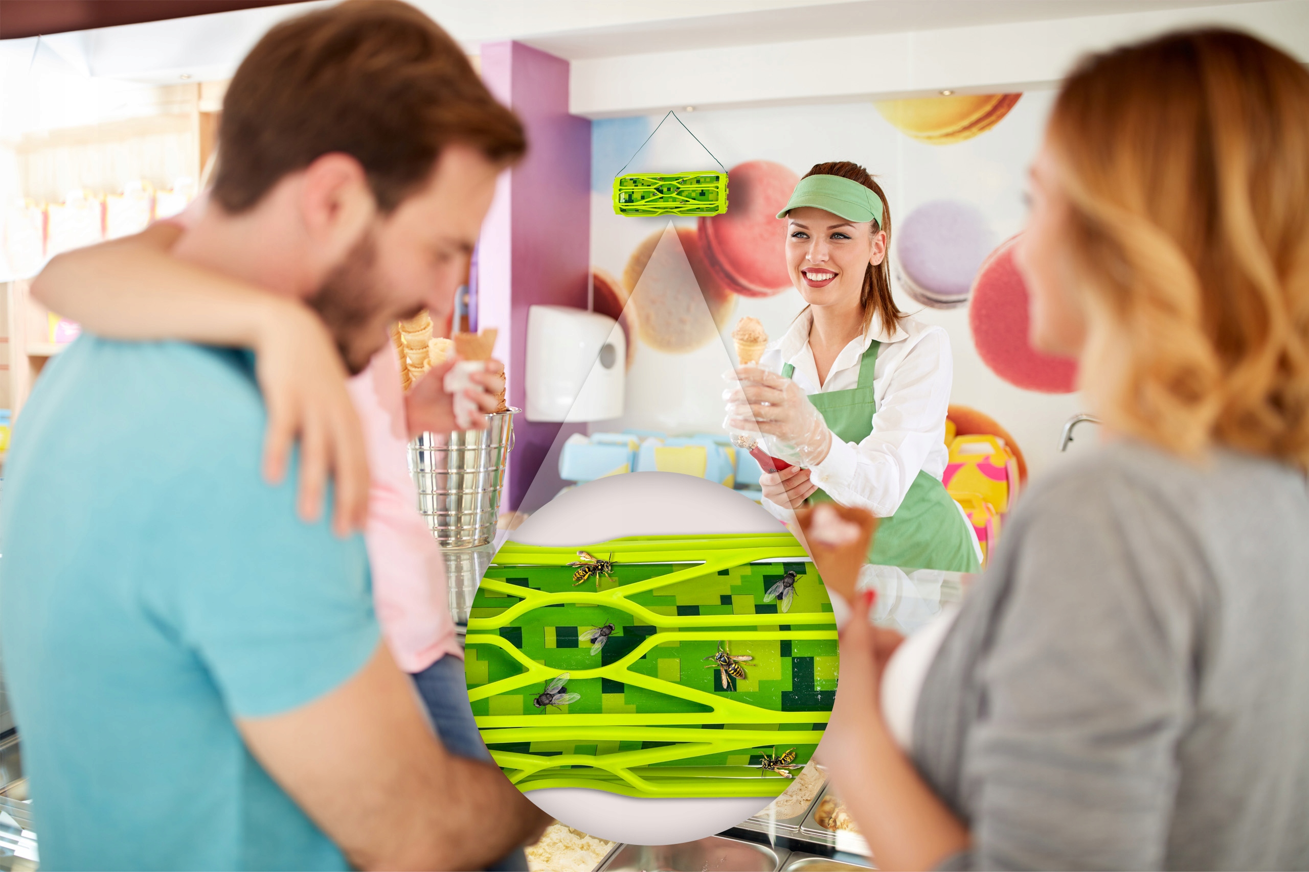 Flip Trap flyqb no fest® благодаря ярким цветам и специально разработанным узоре пикселя -орнамента на липкой поверхности привлекает насекомых, которые нарушены, что нарушается. клей. и еда хранится