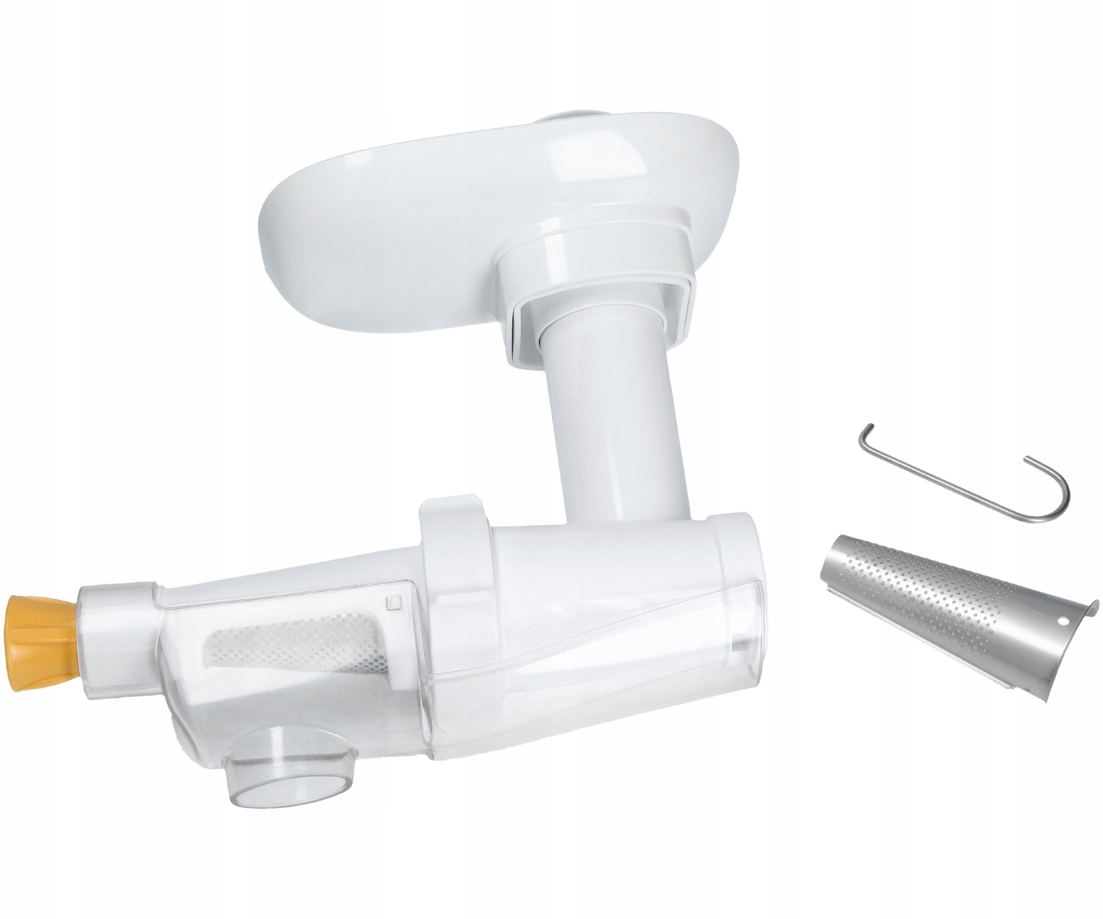 Соковыжималка – дополнительный аксессуар к мясорубкам . Его использование позволяет выжимать сок из фруктов и овощей, таких как: малина, клубника, черника, смородина, крыжовник, виноград, помидоры и т. д. Ягоды можно выжимать вместе с плодоножками. Соковыжималку нельзя использовать для получения сока из фруктов с семенами, например слив, вишни без косточек (удалив семена) и твердых овощей, таких как морковь или свекла.