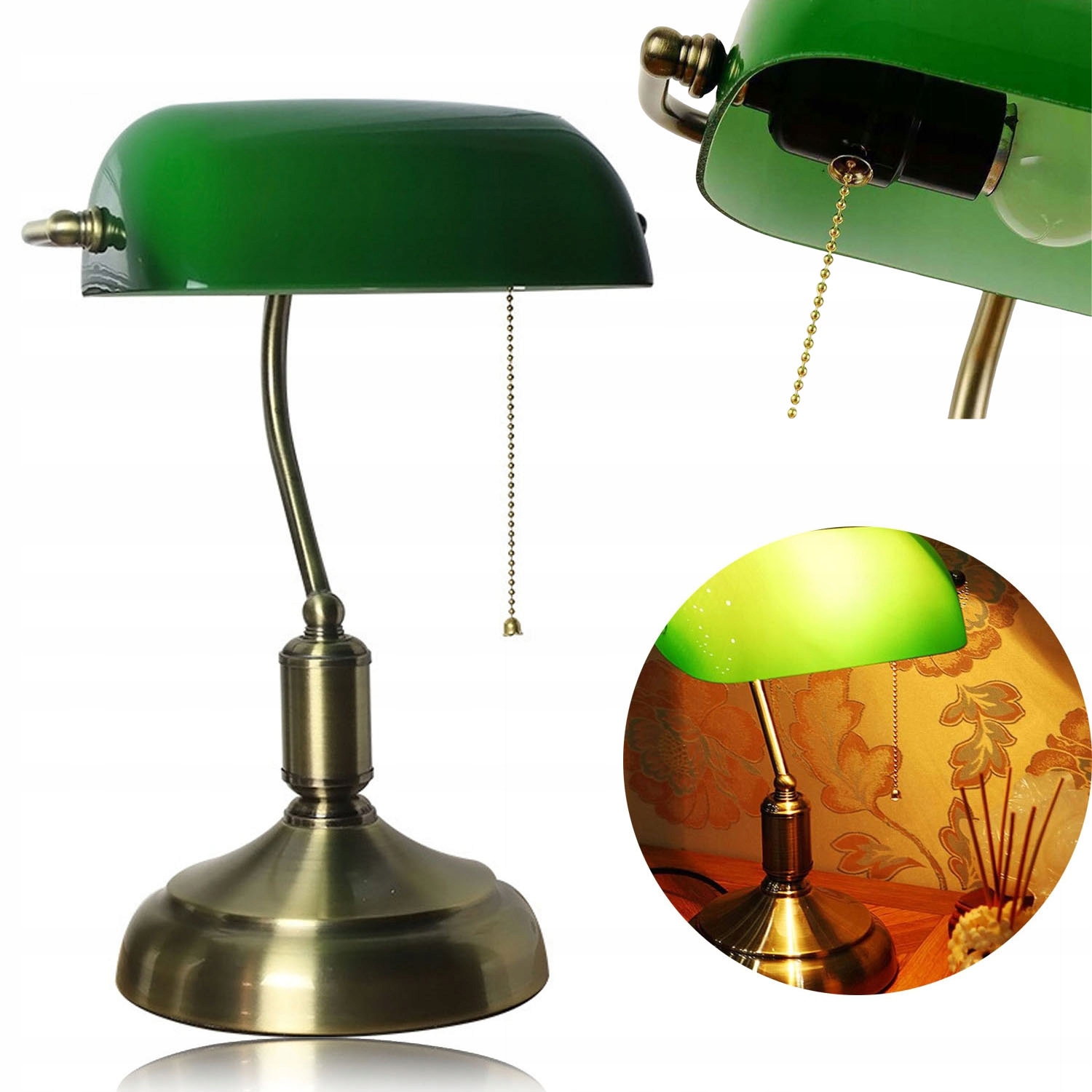 НАСТІЛЬНА БАНКІРСЬКА ЛАМПА КЛАСИЧНИЙ МЕТАЛ СКЛО ЗОЛОТЕ ЗЕЛЕНЕ