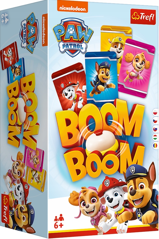 В «Бум-Бум» игроки пытаются собрать наборы одинаковых героев детской сказки «Щенячий патруль». Игроки одновременно обмениваются своими карточками с карточками на доске. Поймав 4 одинаковых персонажей, игрок попадает в колокольчик и сигнализирует о сборе готовой стопки. Игроки могут охотиться за карточками одного типа, что делает игру еще более увлекательной, а игрок, собрав все свои наборы героев Щенячьего патруля, становится победителем!