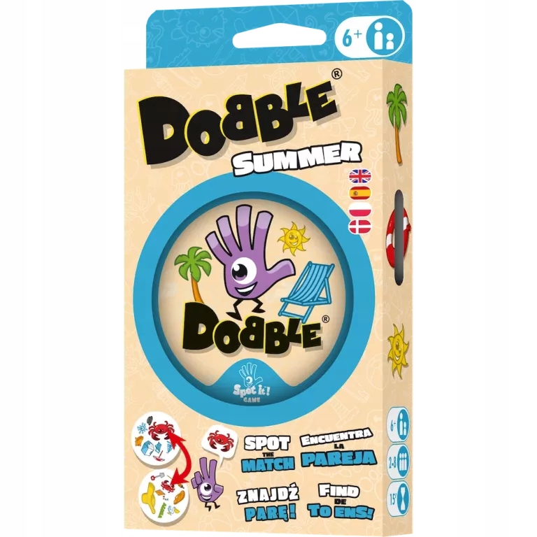 Мороженое, солнце, ракушки, пальмы и морские обитатели... Все, что связано с пляжем и отдыхом, можно найти на характерных круглых карточках! Доббль Лето (Карманный) — это новая версия популярной семейной игры, в которой мы тренируем рефлексы и сообразительность. Играя, мы ищем на картах пары одинаковых символов. Кто первым пришел, тот и получил, но будьте осторожны — любые две карты всегда имеют только одну общую картинку!