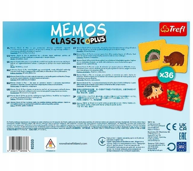 Просматривая «Настольная игра MEMOS CLASSIC PLUS ЖИВОТНЫЕ И ИХ ДОМ Trefl», вы можете быть уверены, что данный товар из каталога «Логические и образовательные» будет доставлен из Польши и проверен на целостность. В цене товара, указанной на сайте, учтена доставка из Польши. Внимание!!! Товары для Евросоюза, согласно законодательству стран Евросоюза, могут отличаться упаковкой или наполнением.
