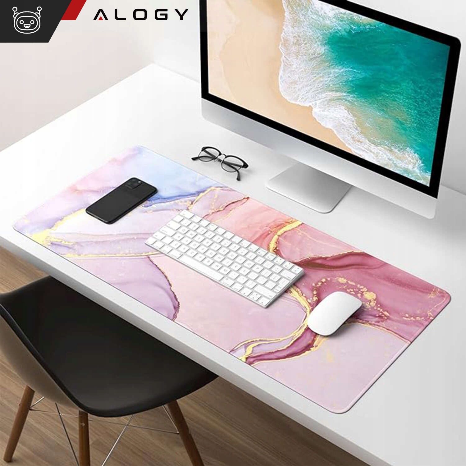 ✅ Настольный коврик Alogy выглядит элегантно и стильно на столе благодаря уникальному мраморному узору.