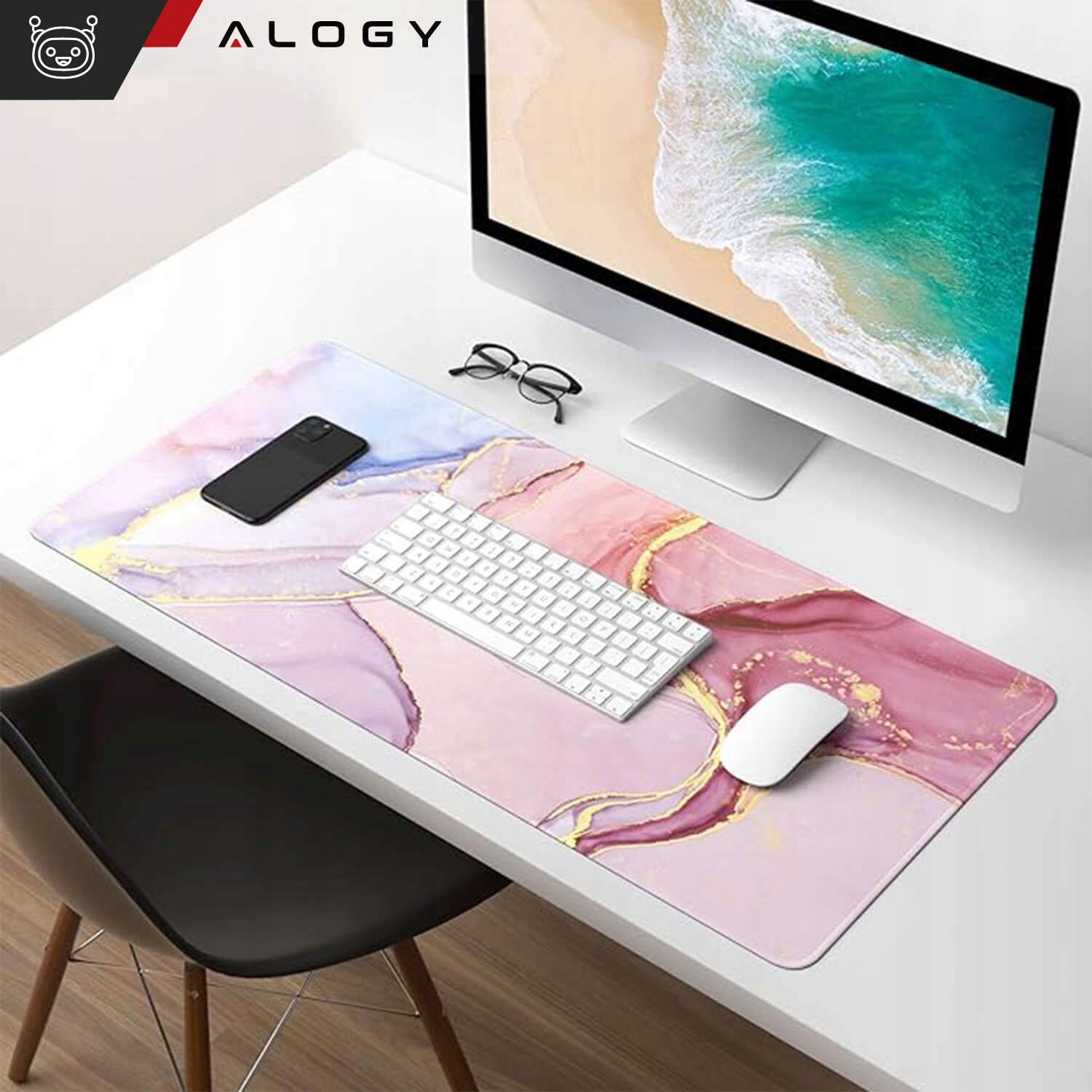 ▶️ Настольный коврик для мыши, клавиатуры, защитный противоскользящий игровой коврик xxl 88x40 Alogy Marble Pink