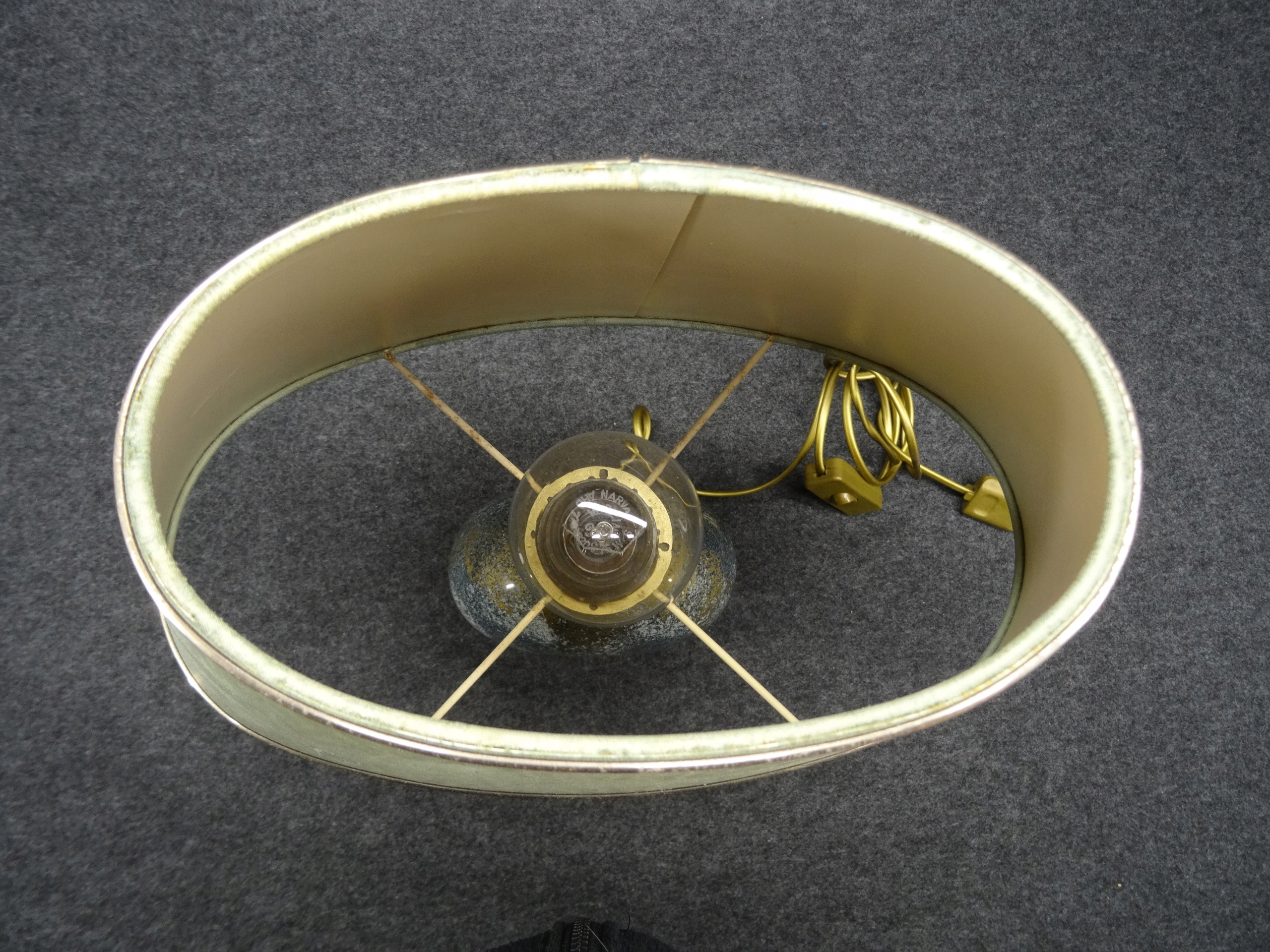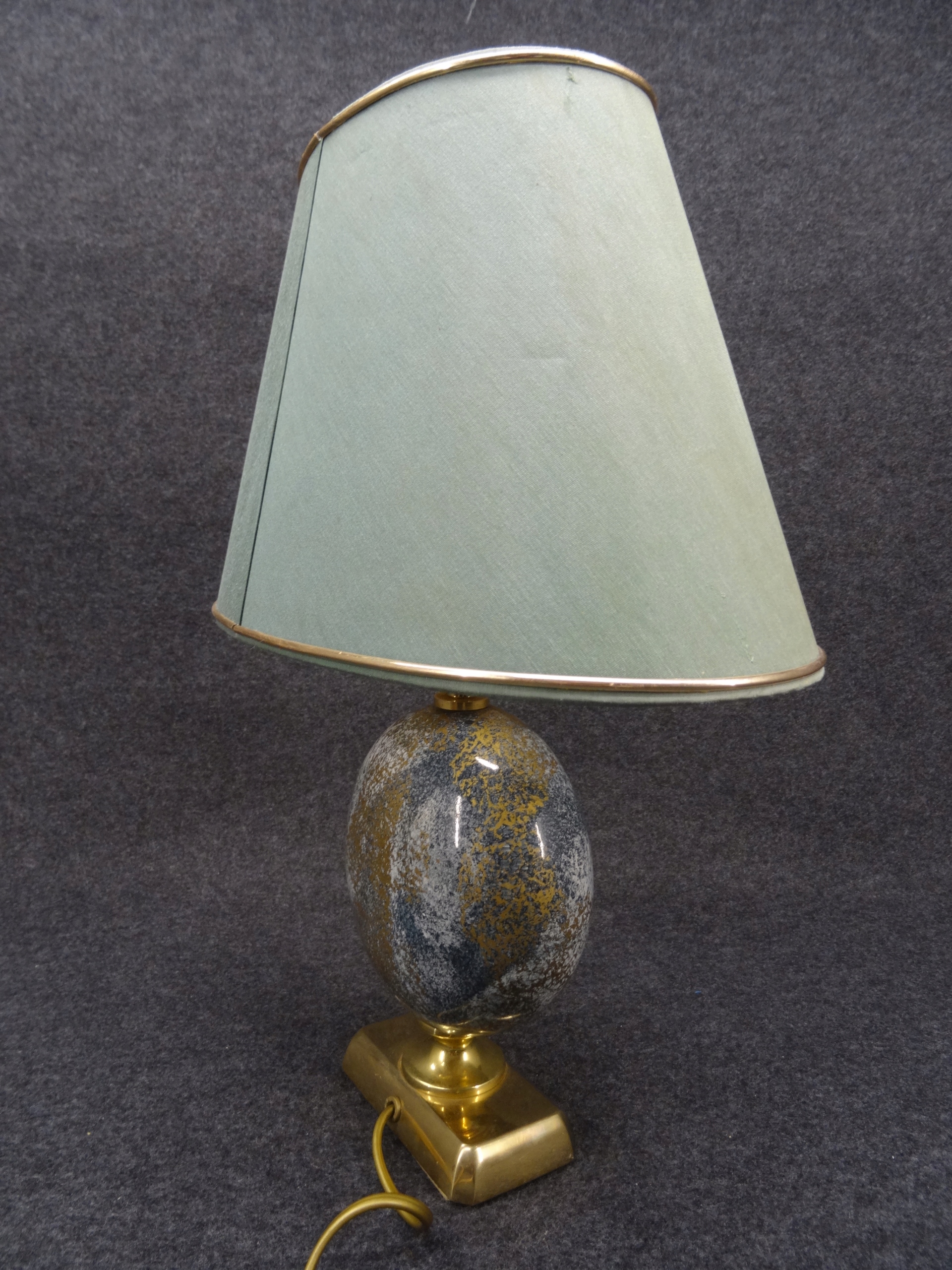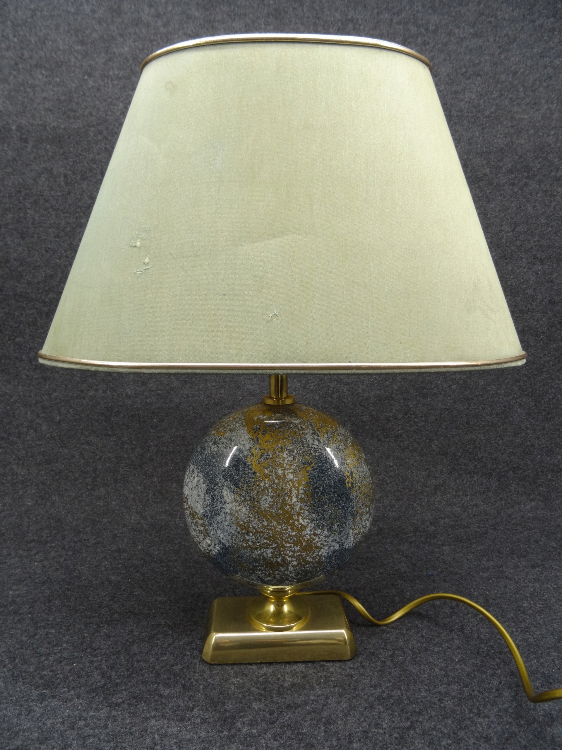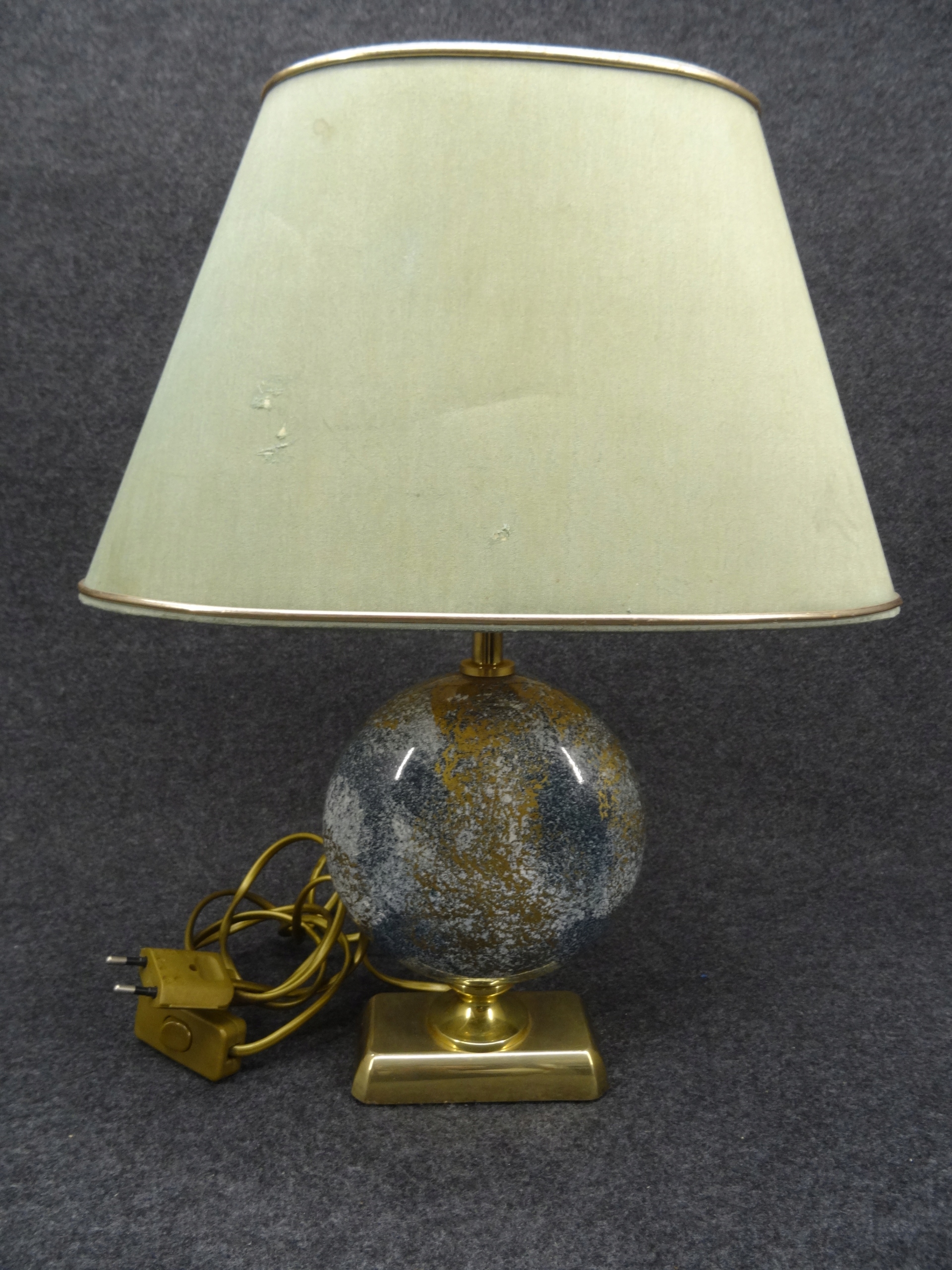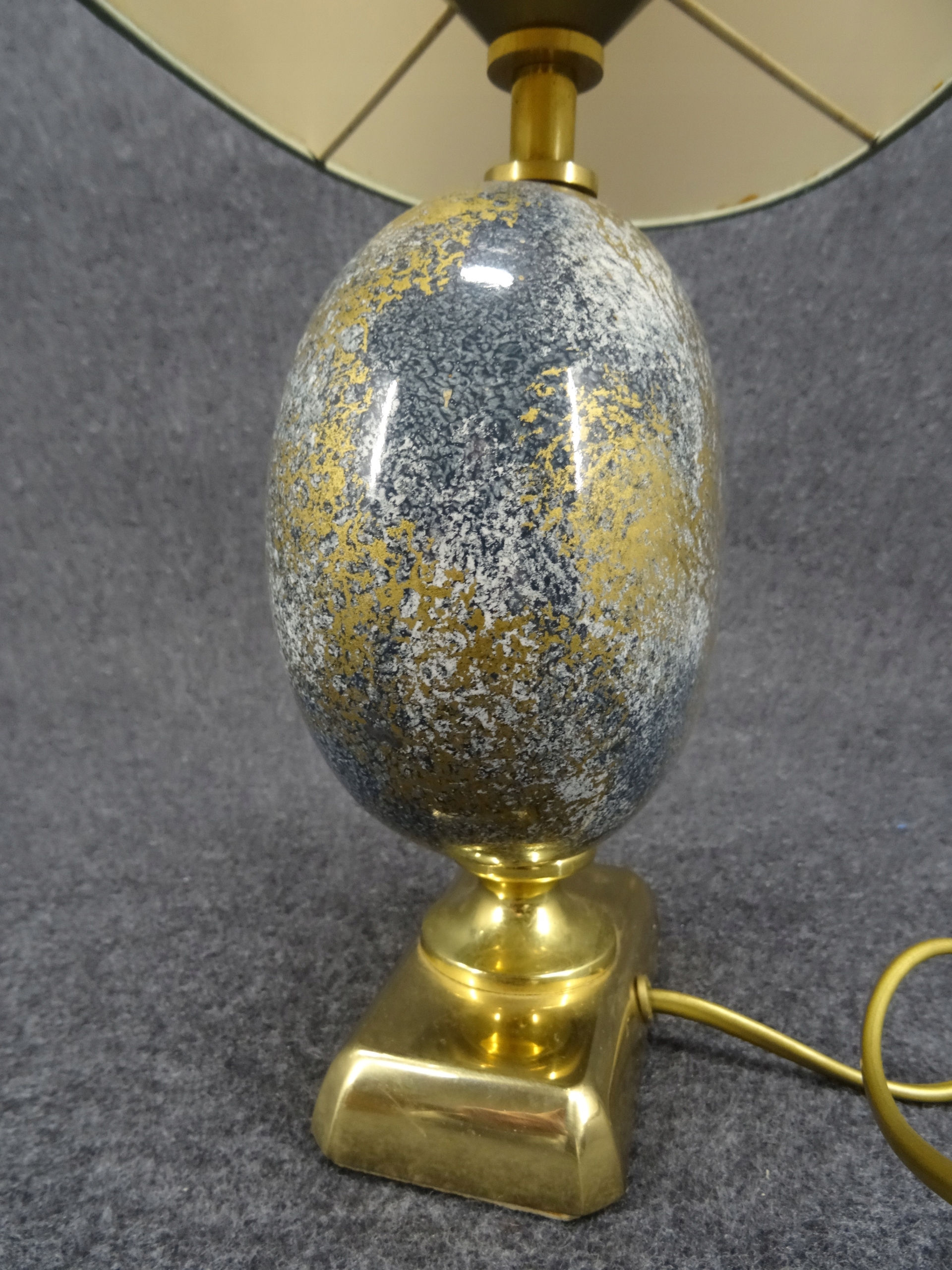 Условие: используется, лампа функциональна, она сияет при включении. Латунные и керамические элементы без повреждений. Абажур, с одной стороны, исчез с солнца с помощью Wiks, грязь, с другой, приятно без повреждений, но это задняя сторона абажура с видимым местом склеивания после включения света. Башни, конечно, можно заменить новым. Состояние, как на фотографиях.