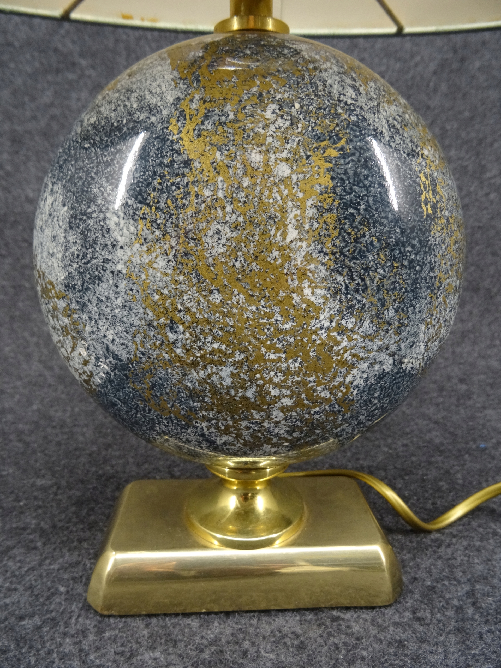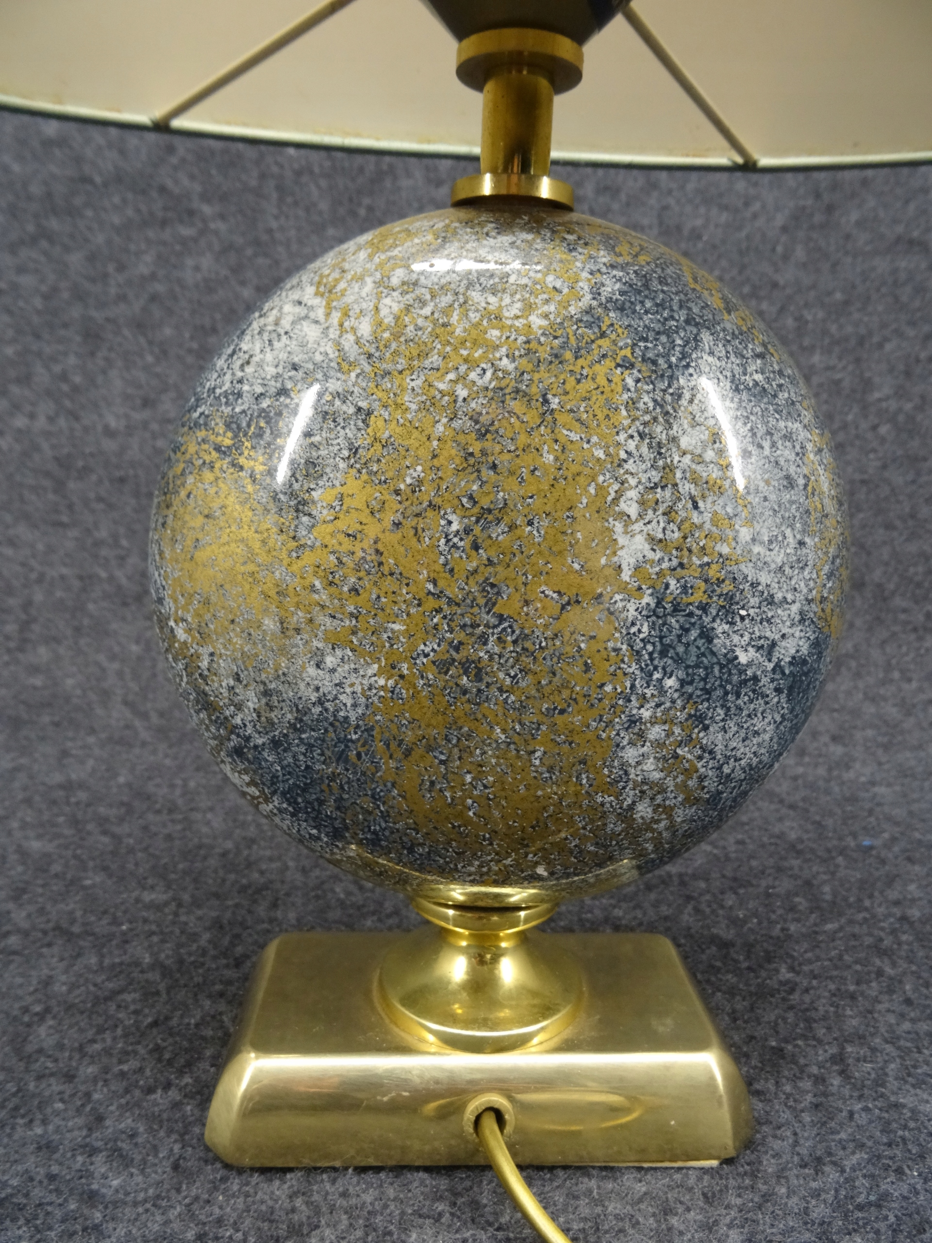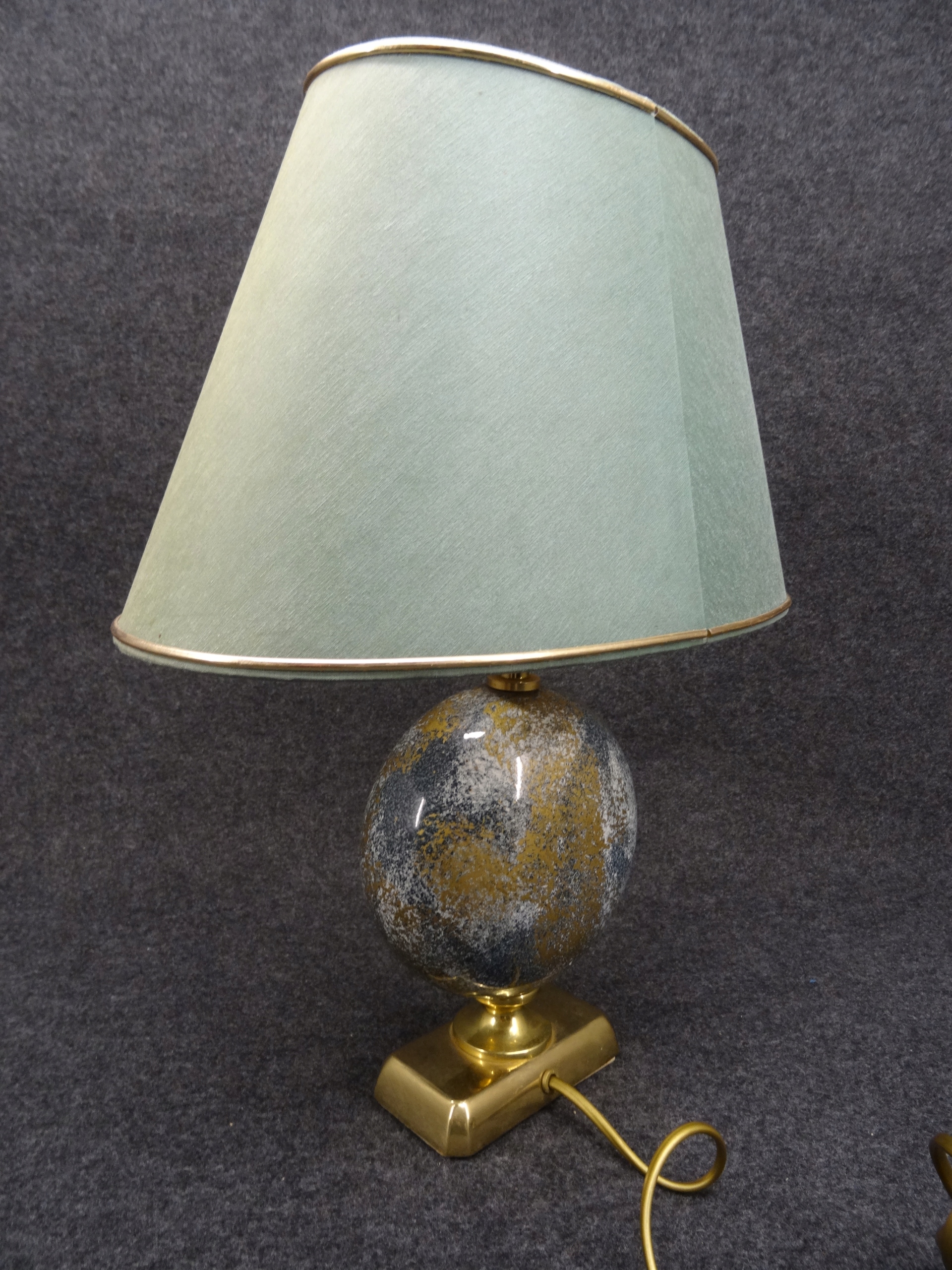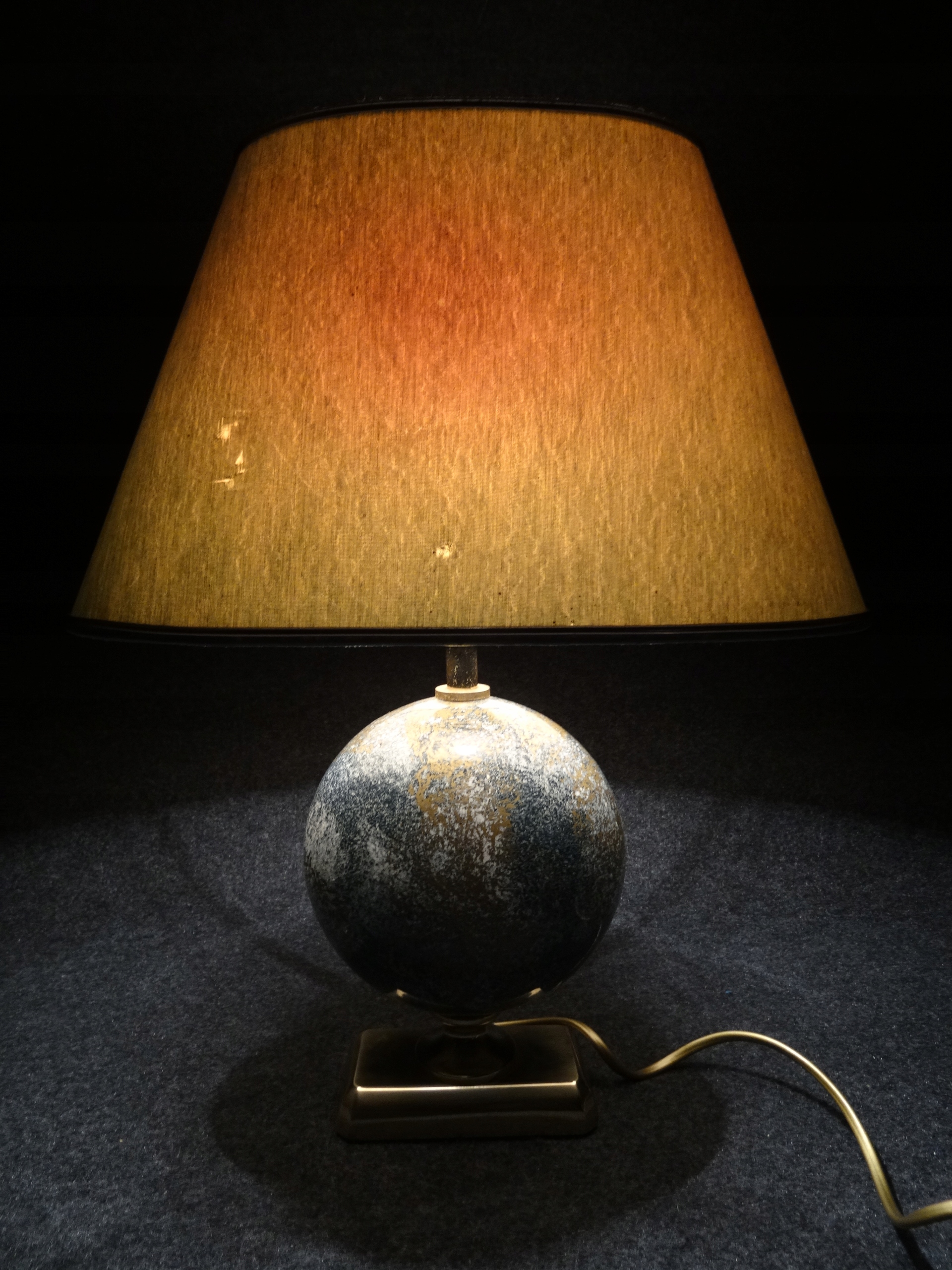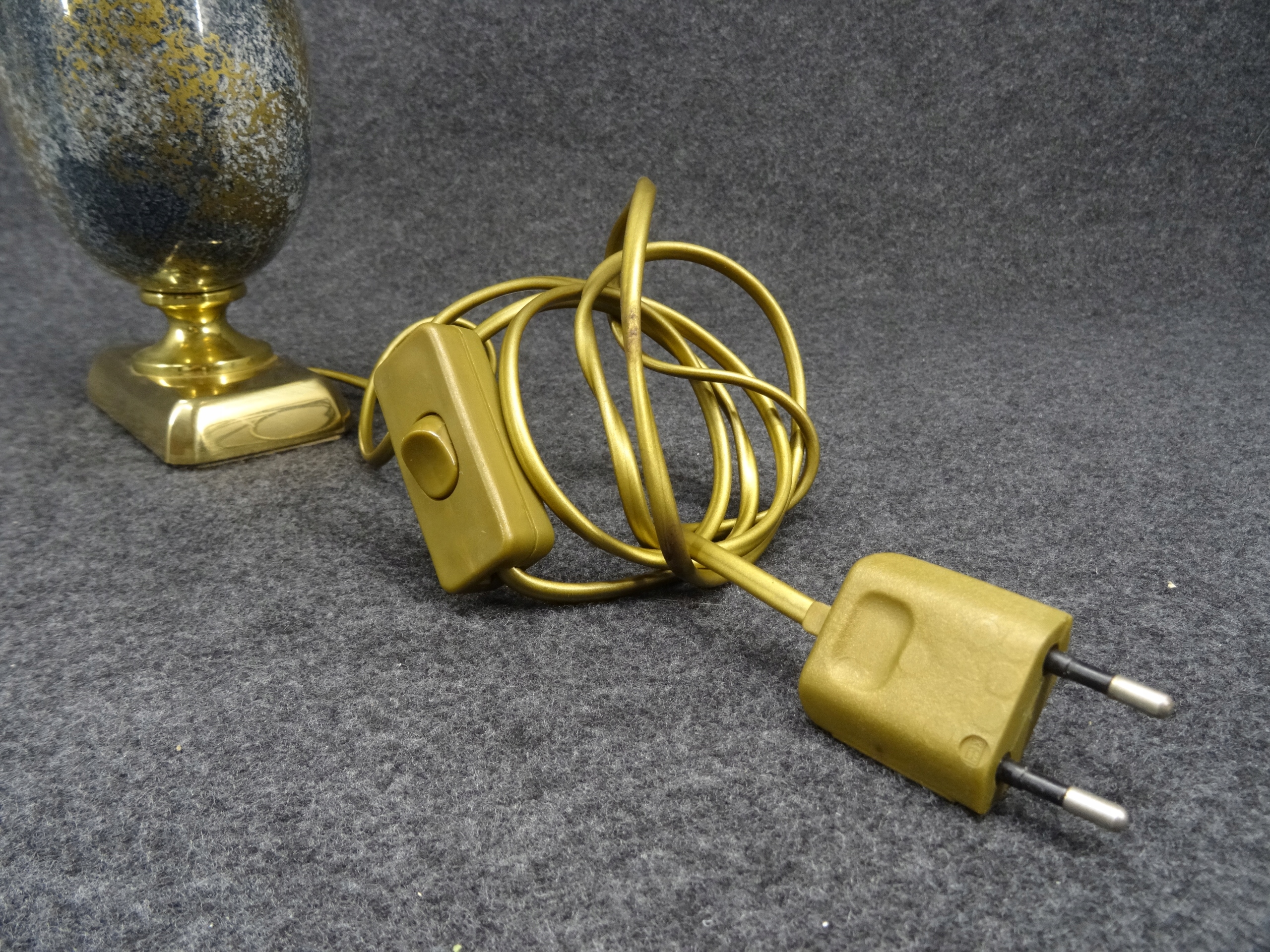 Условие: используется, лампа функциональна, она сияет при включении. Латунные и керамические элементы без повреждений. Абажур, с одной стороны, исчез с солнца с помощью Wiks, грязь, с другой, приятно без повреждений, но это задняя сторона абажура с видимым местом склеивания после включения света. Башни, конечно, можно заменить новым. Состояние, как на фотографиях.
