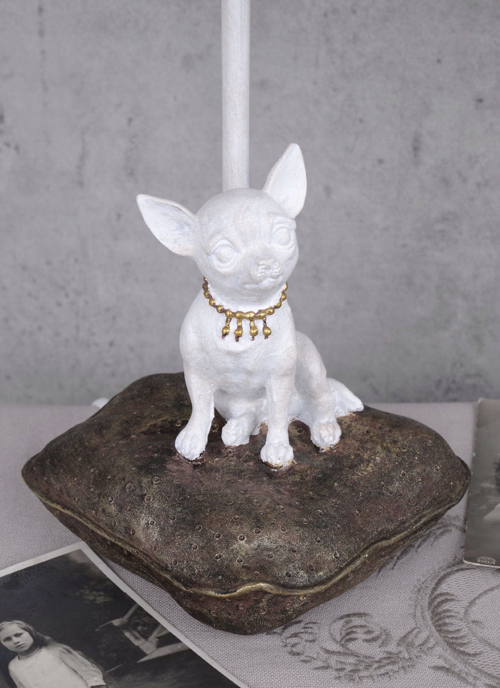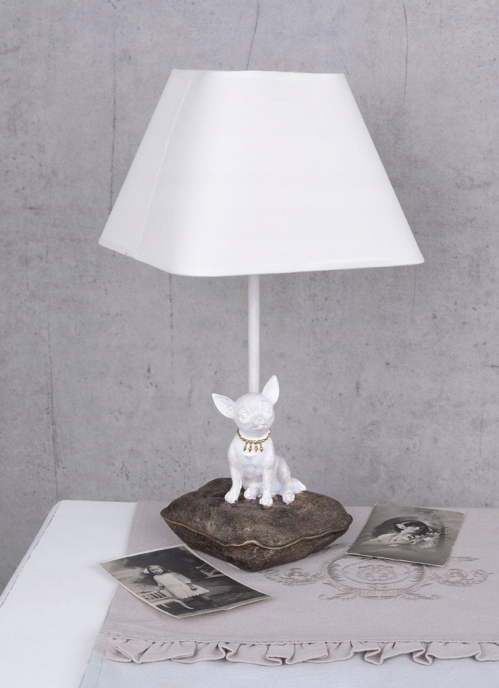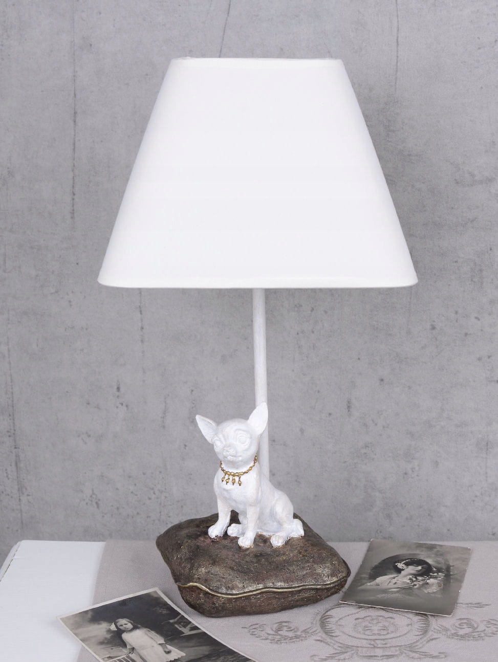 Настільна лампа Біла Чихуахуа в стилі Шеббі-шик