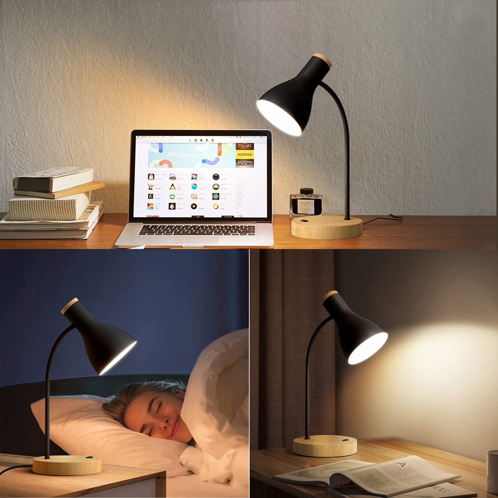 Настольная лампа для чтения деревянной E27 Регулировка 9 Вт светодиод 330 °