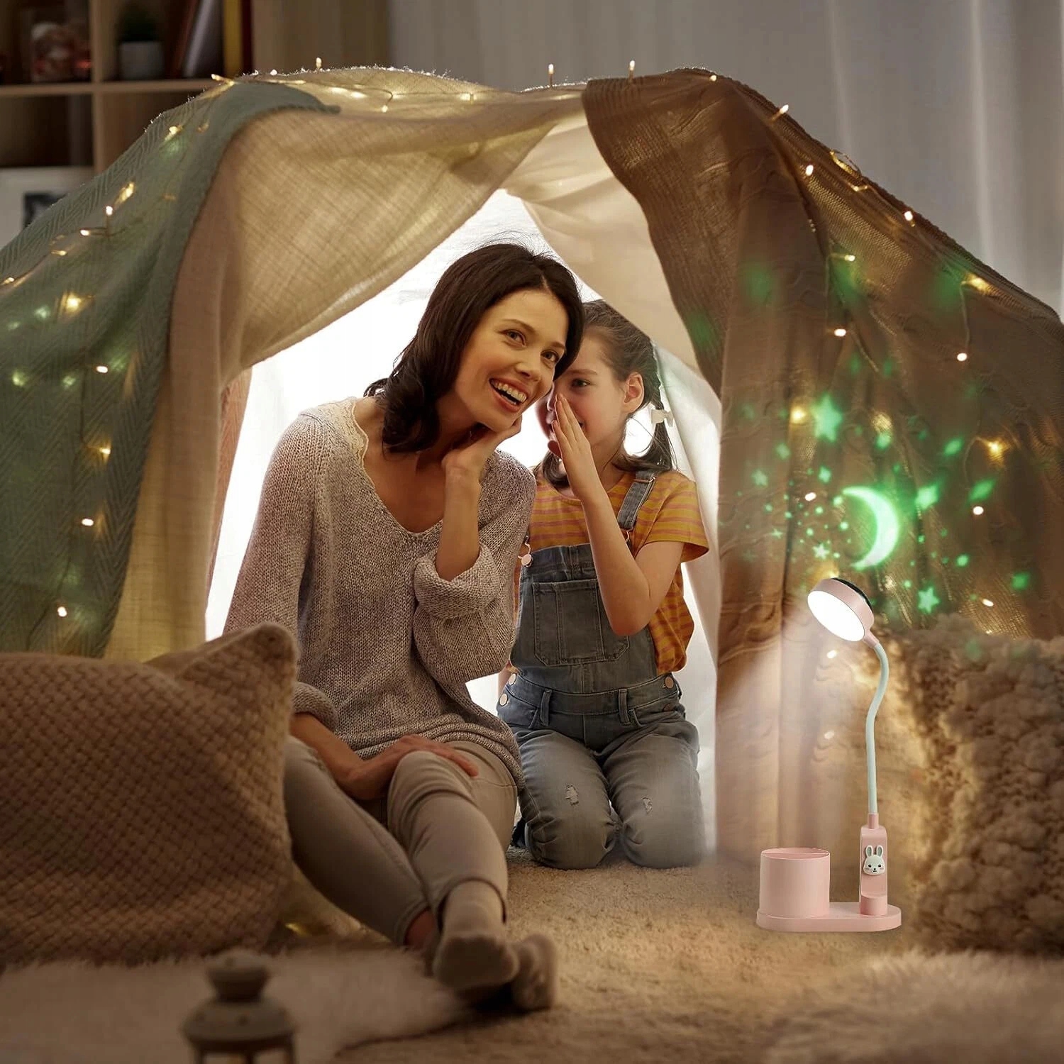 5. ДЕРЖАТЕЛЬ ДЛЯ РУЧКИ И УДОБСТВО: Детская настольная лампа оснащена держателем для ручек, который позволяет упорядочивать различные канцелярские принадлежности, такие как ручки и гаджеты, и поддерживать порядок на столе вашего ребенка. Это практичная настольная лампа и звездный проектор для детской комнаты.