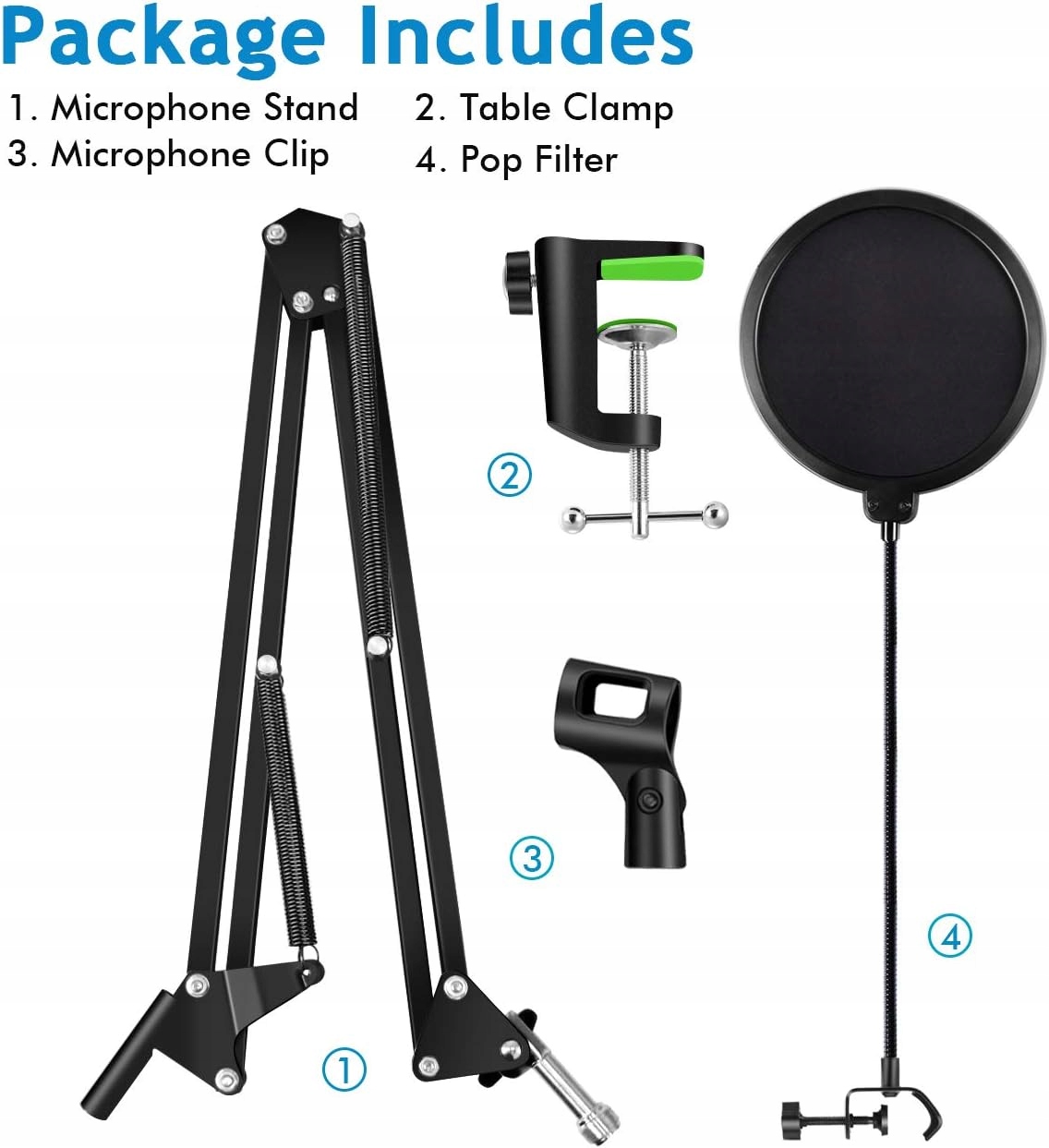 Набор улучшенной микрофонной стойки и поп-фильтра NEUMA, предназначенный для профессиональной записи и вещания. Совместим со всеми типами микрофонов, включая микрофон Bluet Yeti.