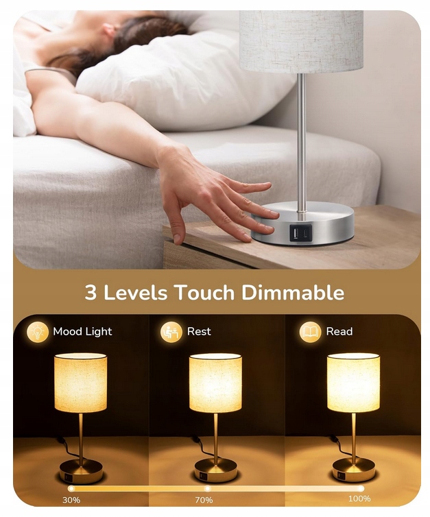 [3-ступенчатая регулировка яркости] Благодаря трем настройкам яркости (30%, 70% и 100%) вы можете легко регулировать освещение, коснувшись основания лампы в спальне; включает в себя регулируемые светодиодные лампы 2700K, которые излучают теплый и уютный свет, могут создать разнообразную атмосферу для различных занятий, таких как отдых, чтение или работа.