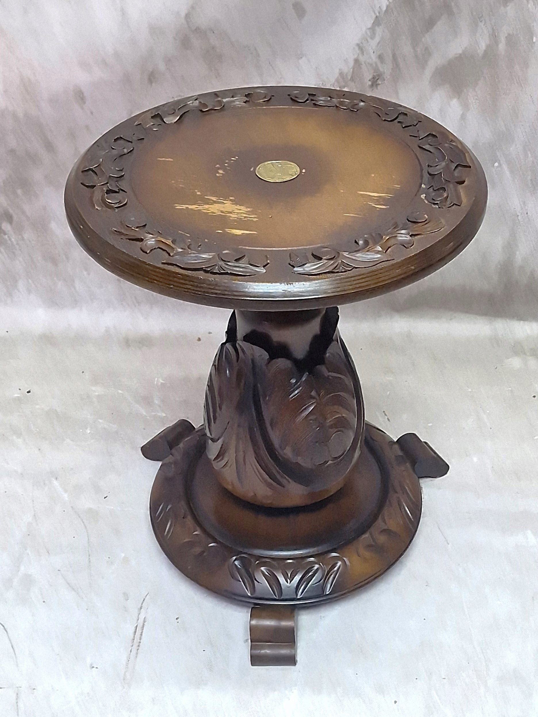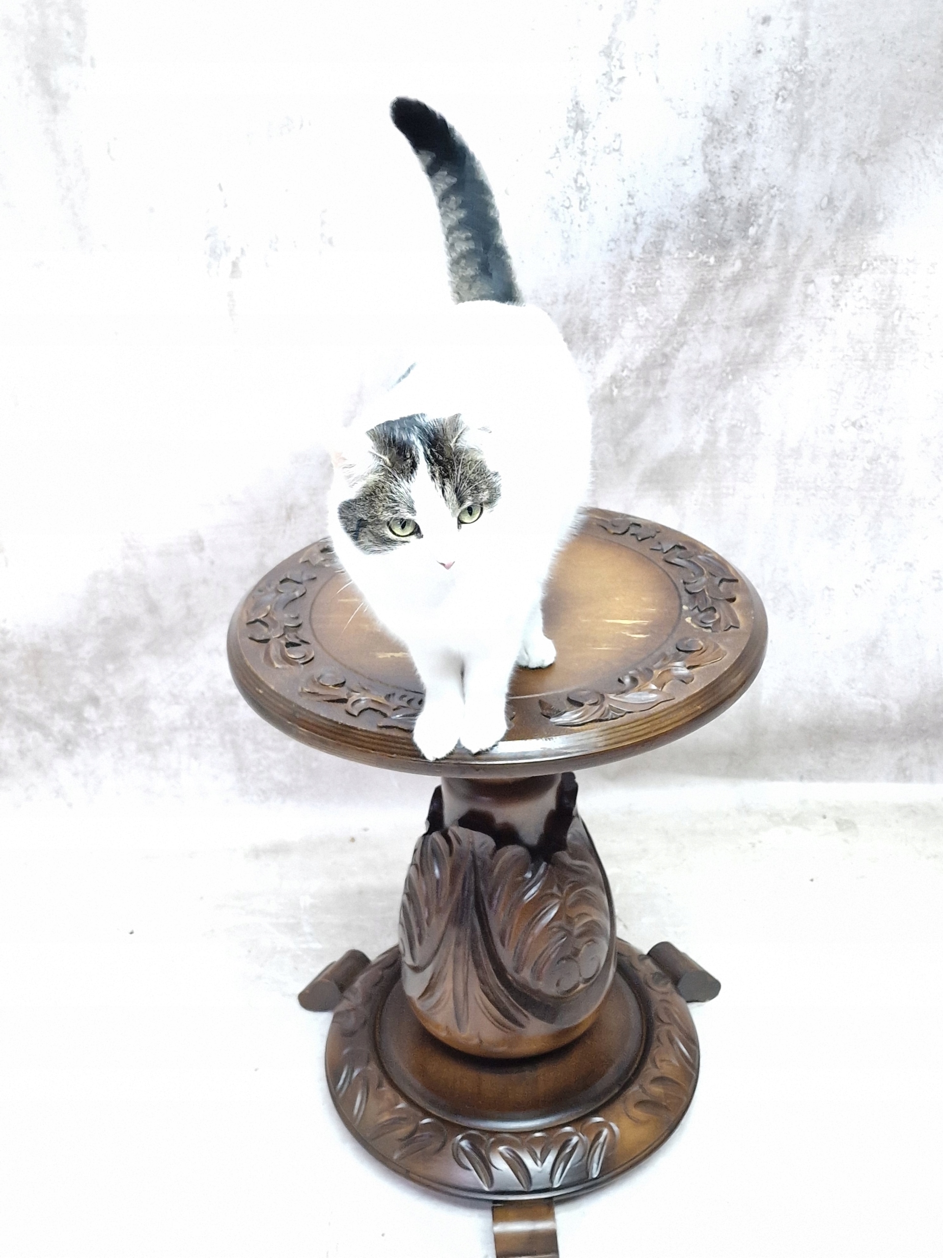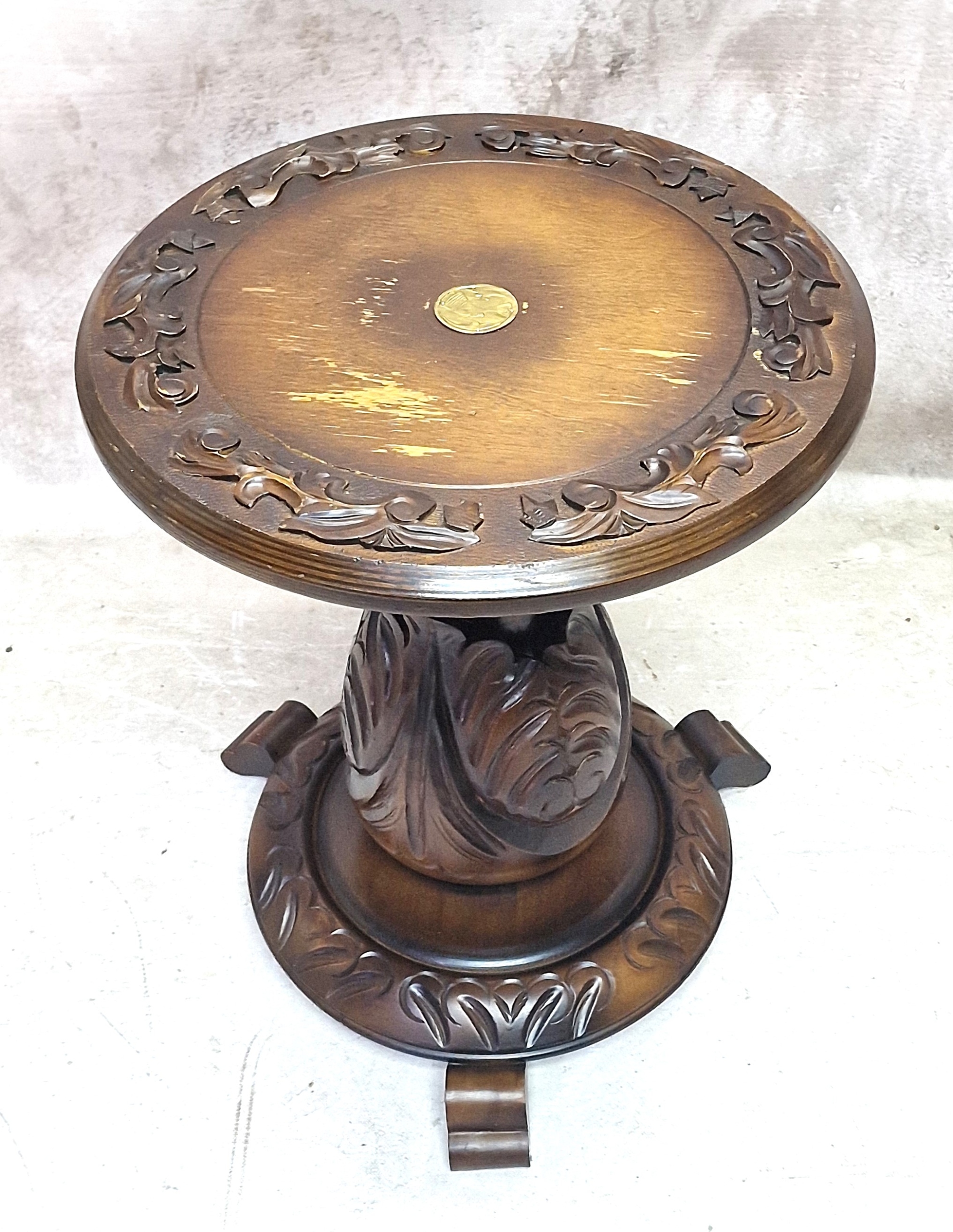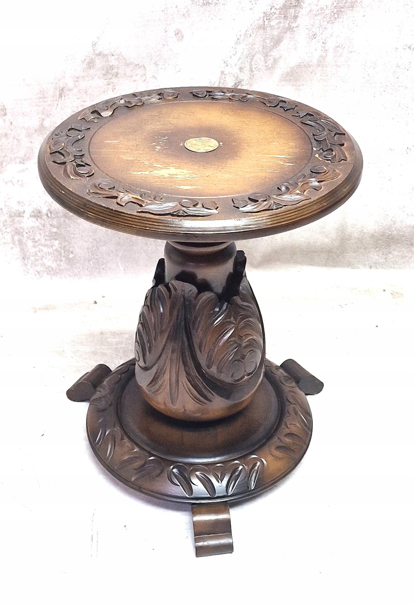 Столешница и основание круглой формы, декоративная ножка с резьбой