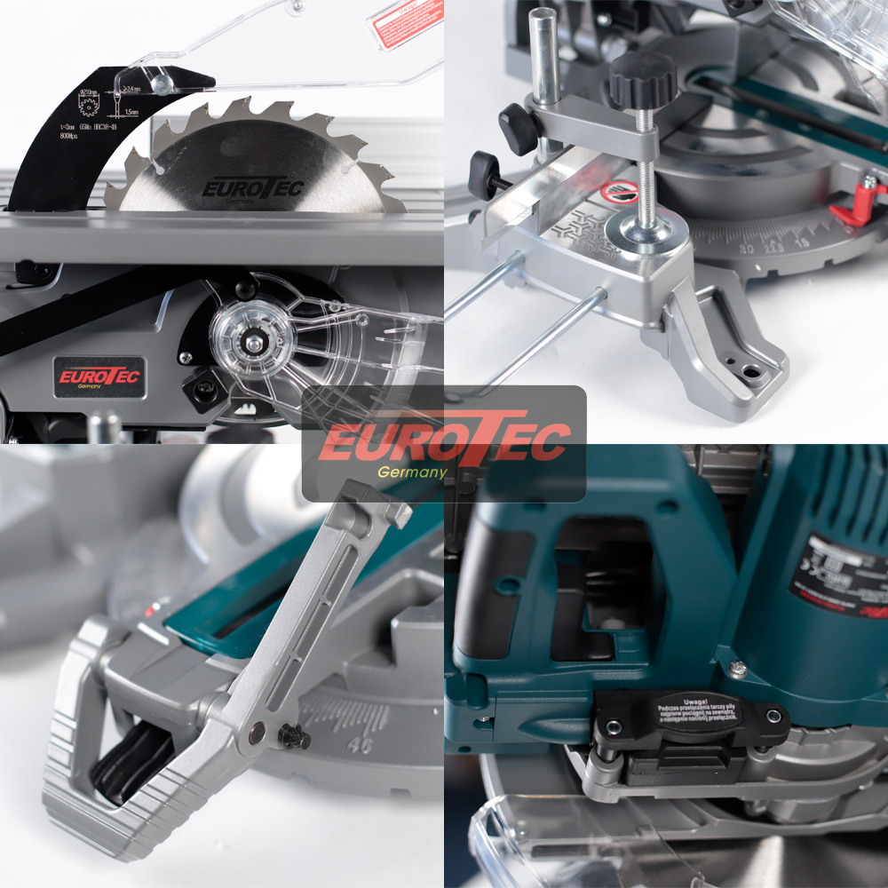 Профессиональный настольный и торцовочная пила EUROTEC Germany 2000W — это современное устройство 2-в-1, сочетающее в себе функции торцовочной пилы и настольной пилы. Благодаря этому он позволяет выполнять чрезвычайно точные разрезы, как продольные, так и поперечные, а также под различными углами. Это идеальное решение для плотников, слесарей, любителей DIY и мастерских, которым нужна универсальность и высокая мощность в одном устройстве.