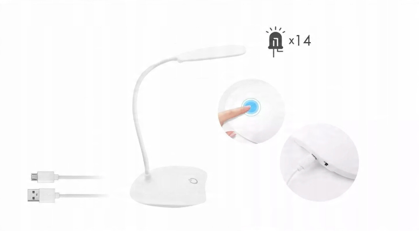 Настільна сенсорна USB лампа, 14 світлодіодів, біла