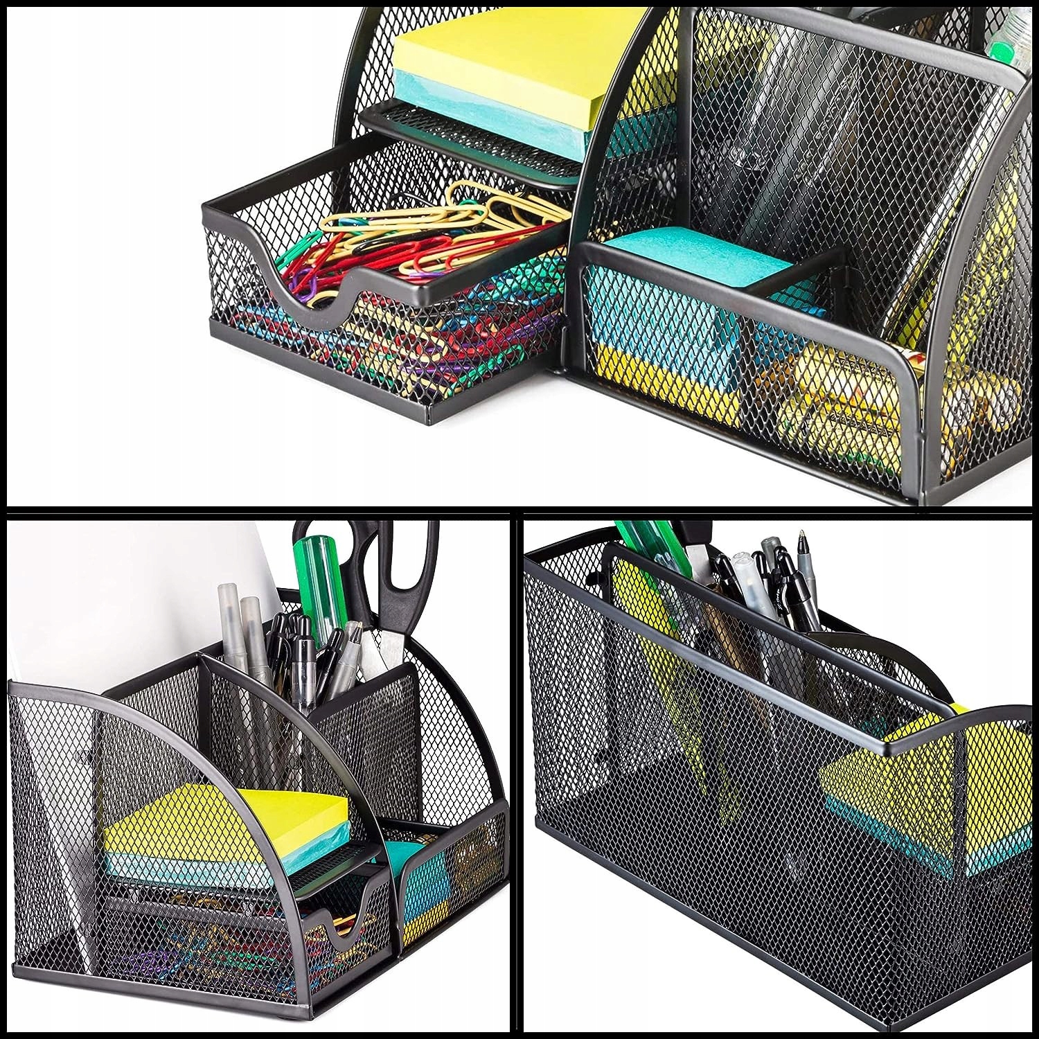 Металлический настольный органайзер позволит вам разложить по местам ручки, мелки, фломастеры, ластики, скрепки, клей или ножницы, которые до сих пор лежали без дела! Теперь все это можно уместить в одну металлическую коробку с выдвижным ящиком.