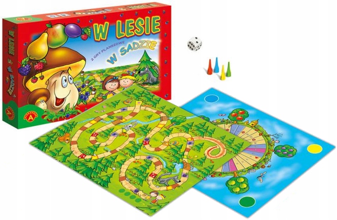 Две интригующие и насыщенные настольные игры для самых маленьких. Типичная гонка с неожиданными полями стала еще интереснее благодаря уникальному реквизиту. Помимо традиционных (для настольных игр) пешек и кубиков, игроки получают корзину, в которую собирают грибы, ежевику, чернику или яблоки, сливы и груши. Игра — идеальное начало приключений с настольными играми для самых маленьких.