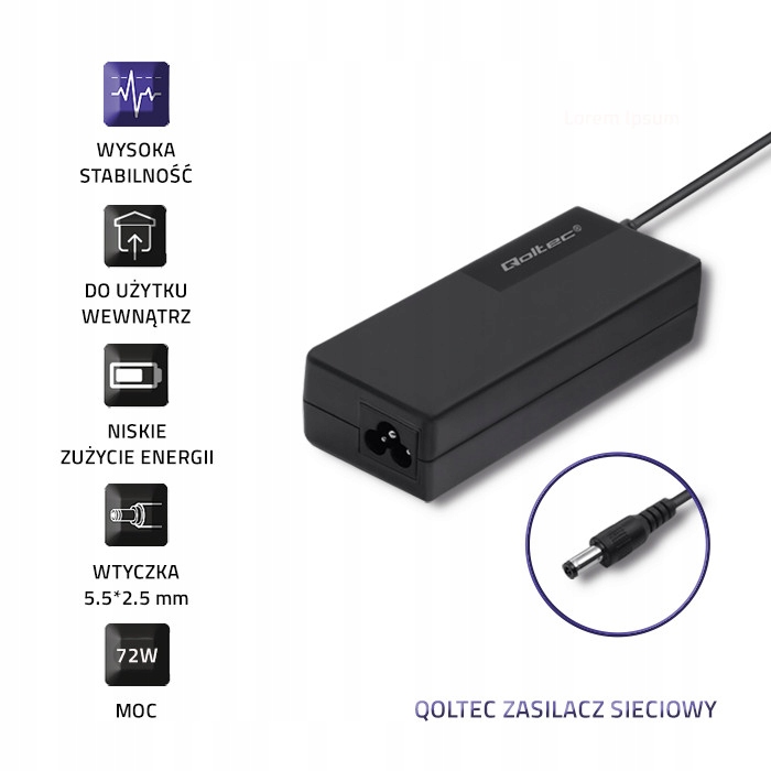 Настольный блок питания Qoltec 72 Вт | 24В | 3А | 5,5*2,5 |+кабель питания
