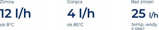 - Для воды неизменной температуры производительность составляет 25 литров/час.