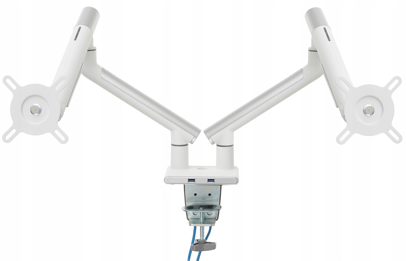 Настольный держатель для двух ЖК-мониторов 17-32 дюйма, газовая пружина, алюминий с порошковым покрытием белого цвета