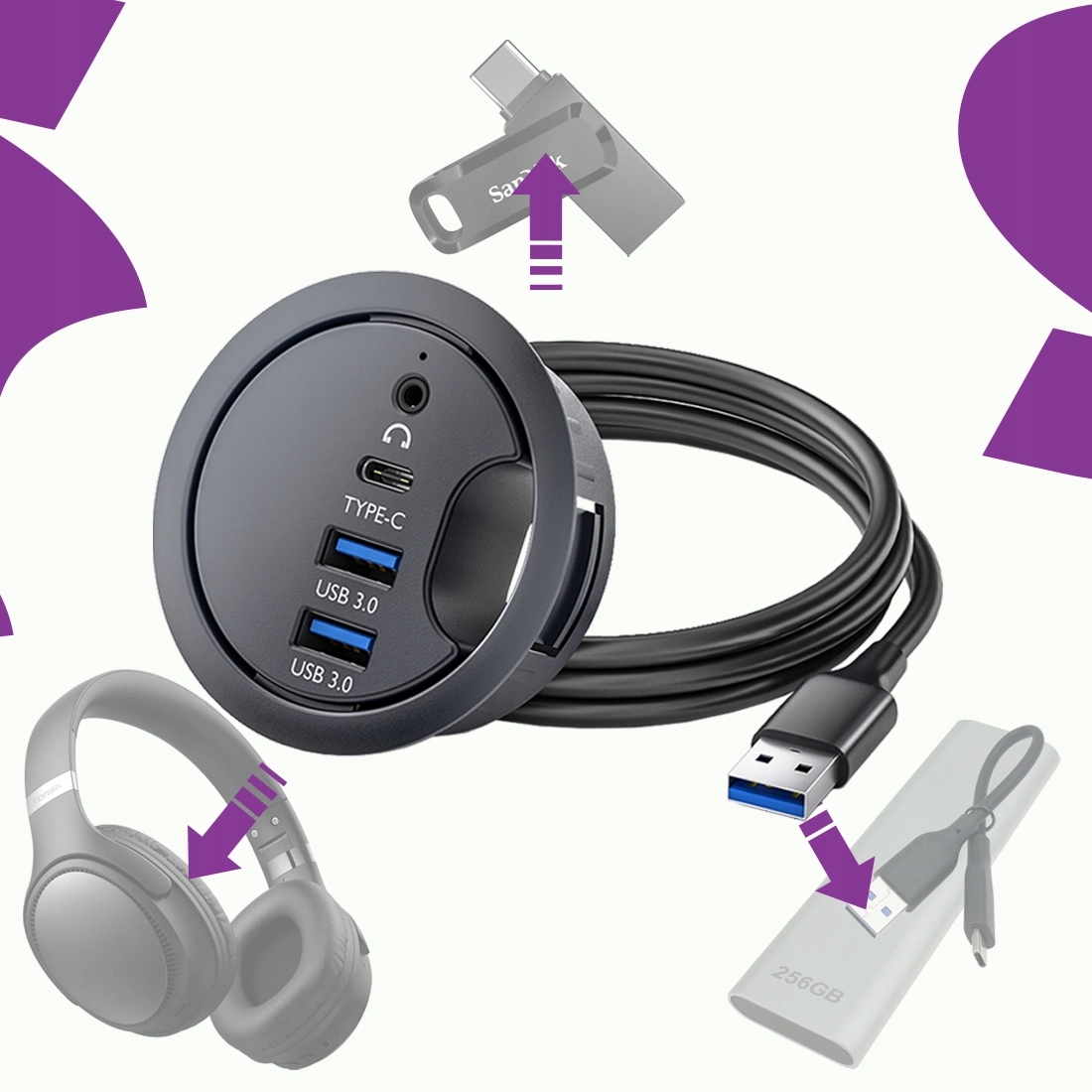 Получите функциональный доступ к портам без разбросанных по столу кабелей.