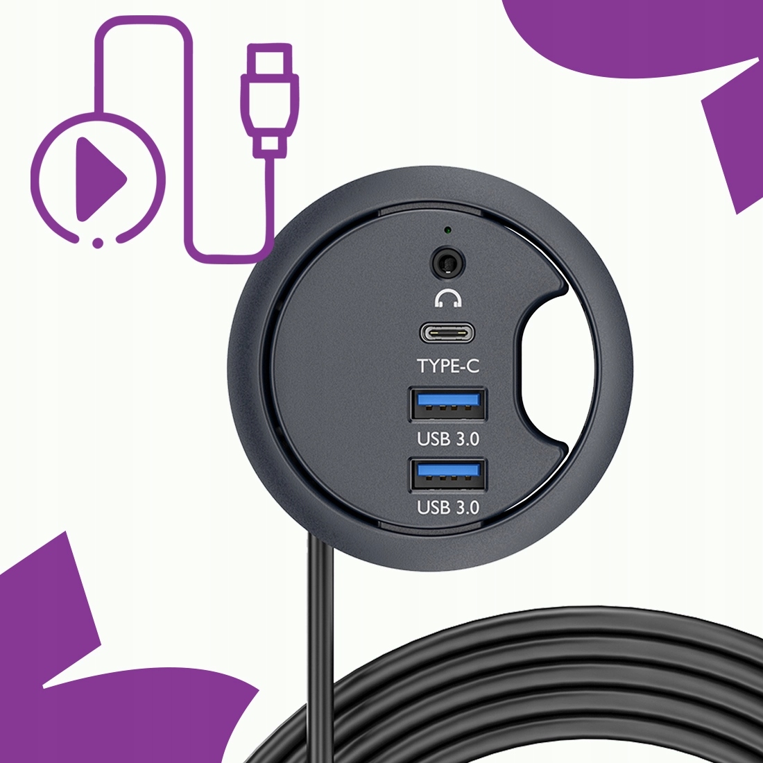 ☑️ Установка в отверстие диаметром 60 мм: устойчивое и эстетичное решение, позволяющее организовать кабели без беспорядка на столе.