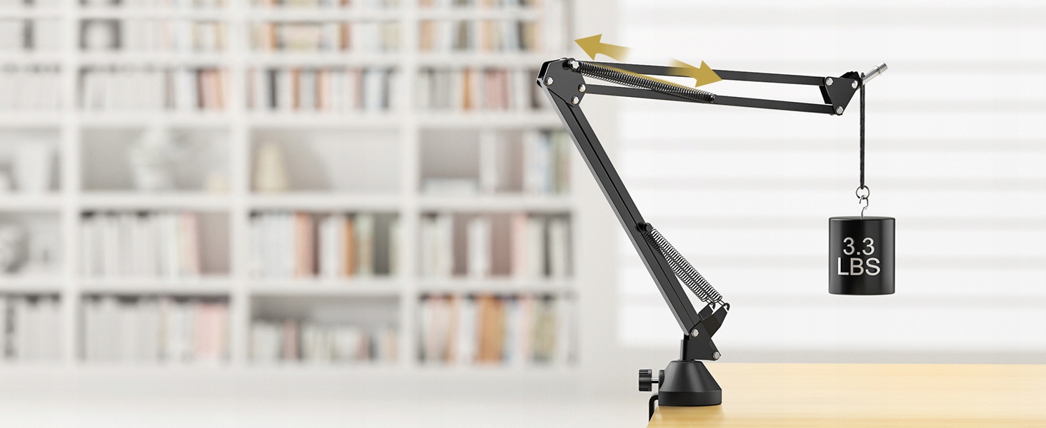Усиленная подставка для микрофона. Благодаря добавлению металлических шайб долговечность подставки для микрофона значительно увеличена. Благодаря максимальной нагрузке 1,5 кг (3,3 фунта) при угле изгиба 90° он может поддерживать большинство микрофонов, представленных на рынке. Рукоятки длиной 13,78+13,78 дюймов (35+35 см) можно выдвинуть до 27,56 дюймов (70 см) по горизонтали и вертикали, что значительно расширяет возможности регулировки микрофона.