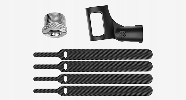Управление кабелями. В комплект входят четыре высококачественных застежки-липучки, позволяющие легко прикрепить кабели к штанге и упорядочить спутанные микрофонные кабели, попрощавшись с беспорядком на столе.