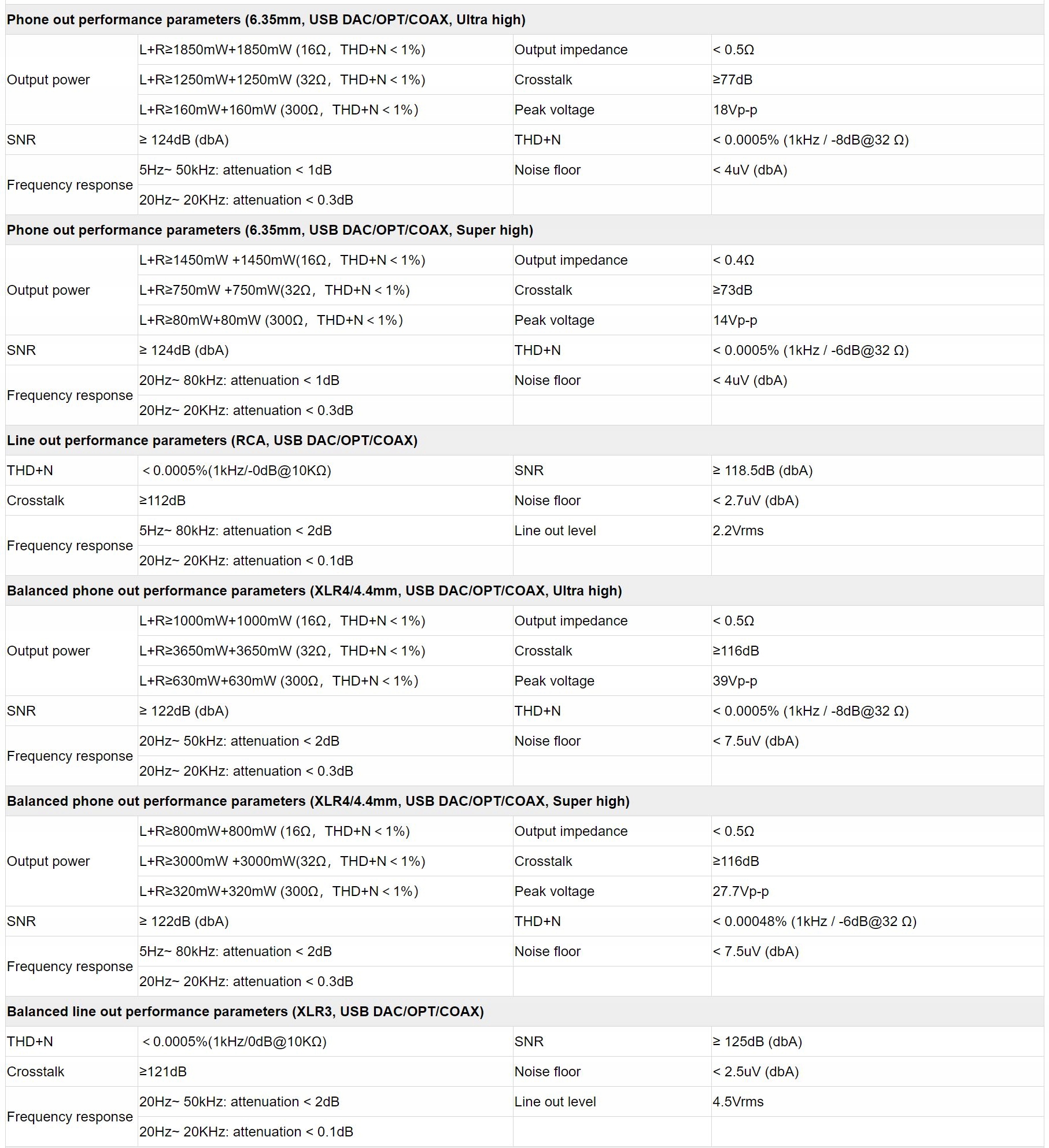 Использование в R7 эффективных усилителей THX позволяет достичь выходной мощности до 3,6 Вт (при нагрузке 32 Ом). Это позволяет легко управлять даже очень требовательными наушниками. FiiO дополнительно предоставила пять уровней усиления — низкий, средний, высокий для полноразмерных наушников и расширенный для полноразмерных наушников. Это позволяет точно настроить выходную мощность в соответствии с используемыми наушниками.
