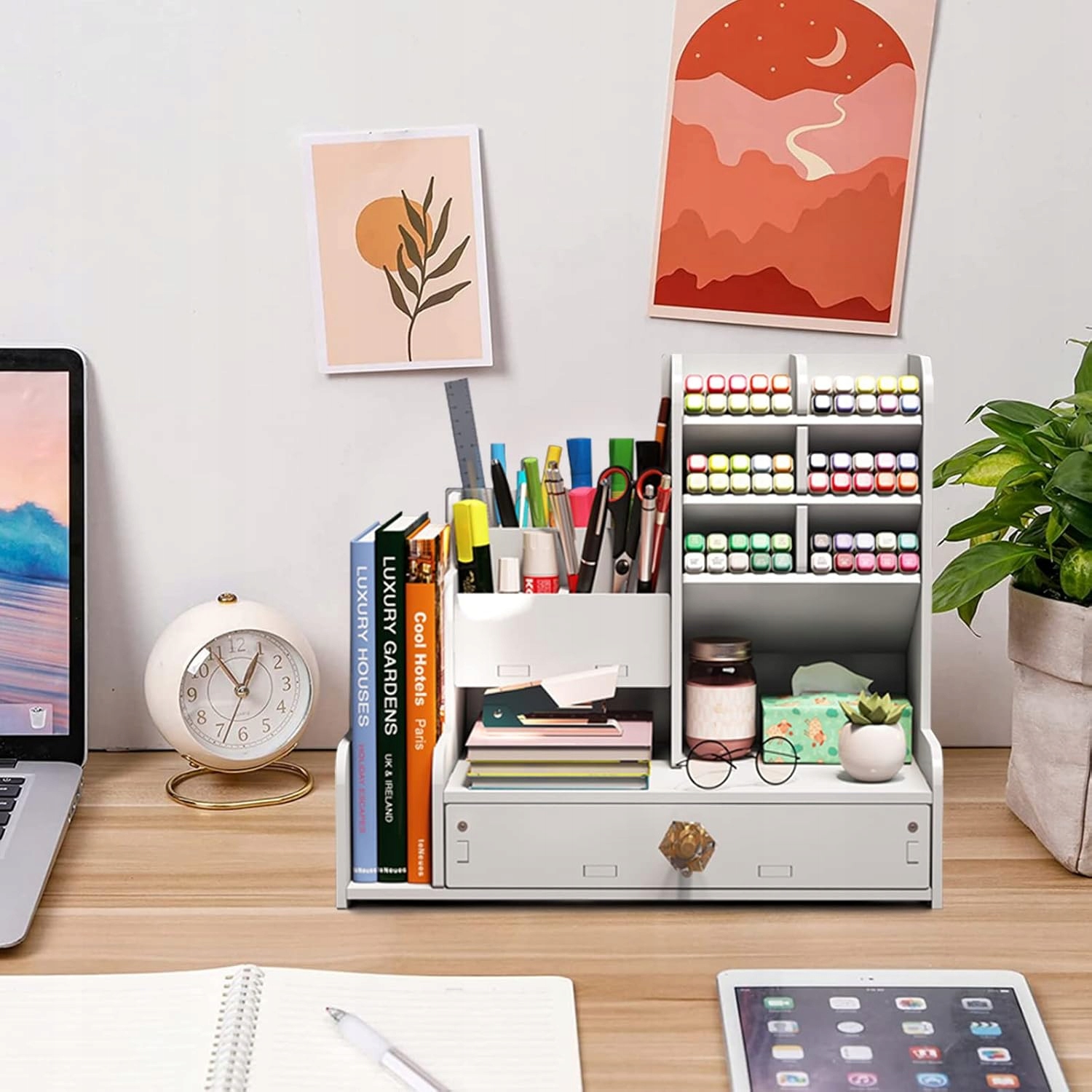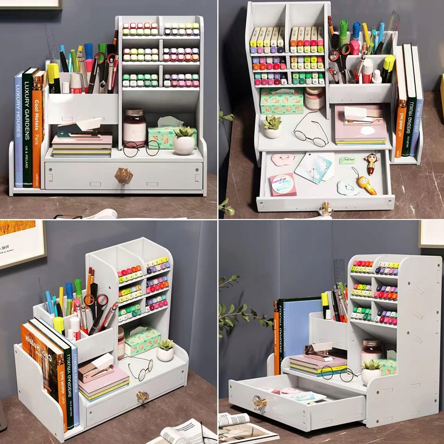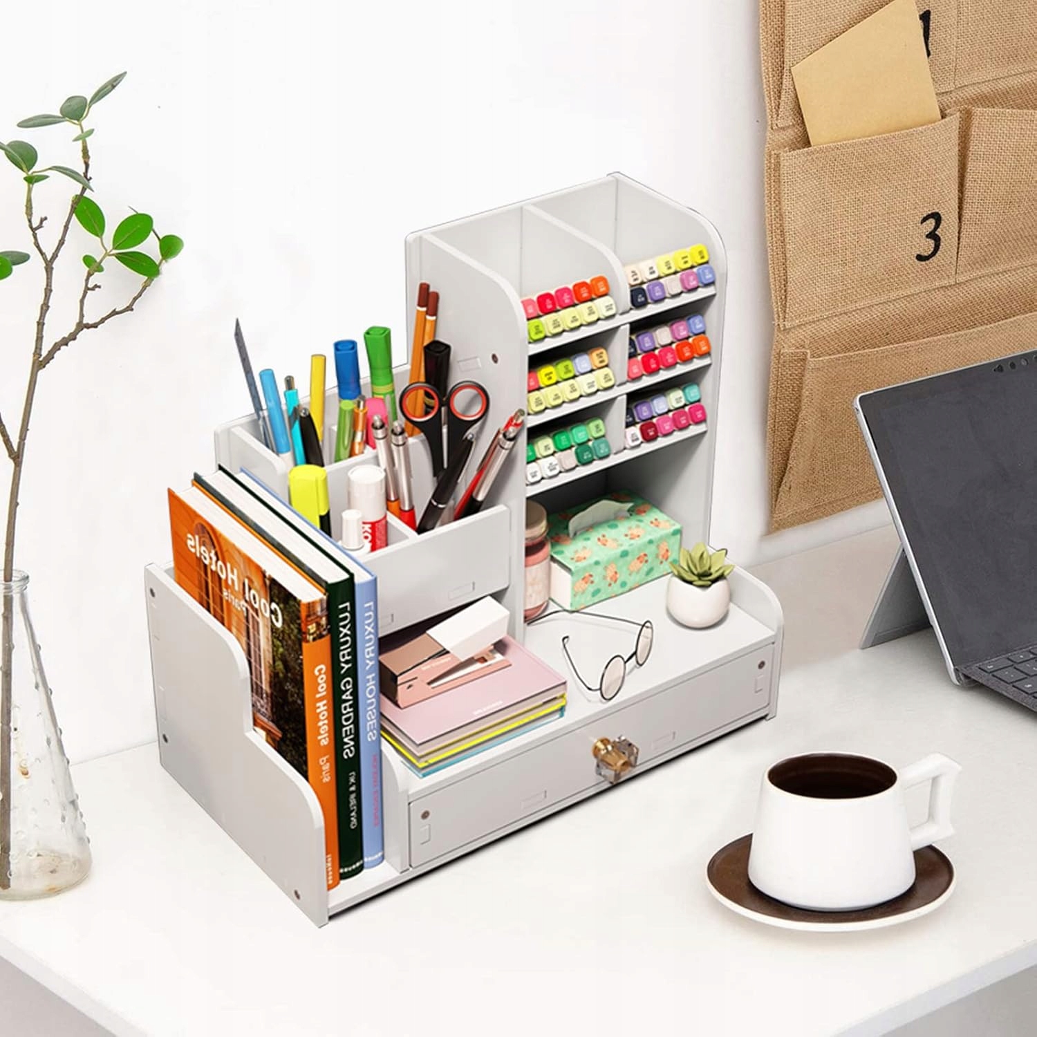 ⭐ Многофункциональный настольный органайзер для канцелярских товаров с отделением для книг и ящиком
