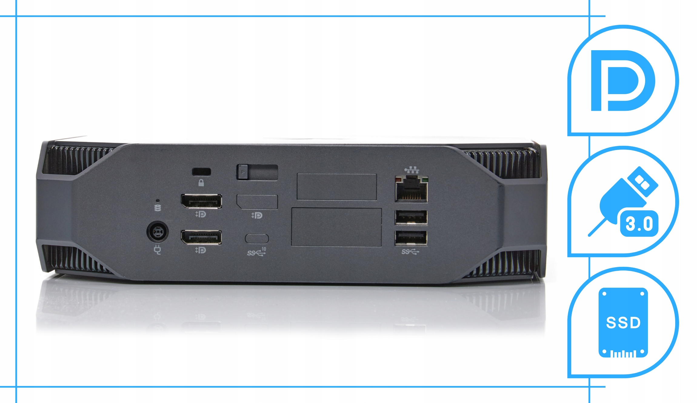 ✅ Задняя панель компьютера оснащена, среди прочего, 2 портами DisplayPort. Это позволяет отправлять изображения в цифровом режиме, в высоком разрешении.