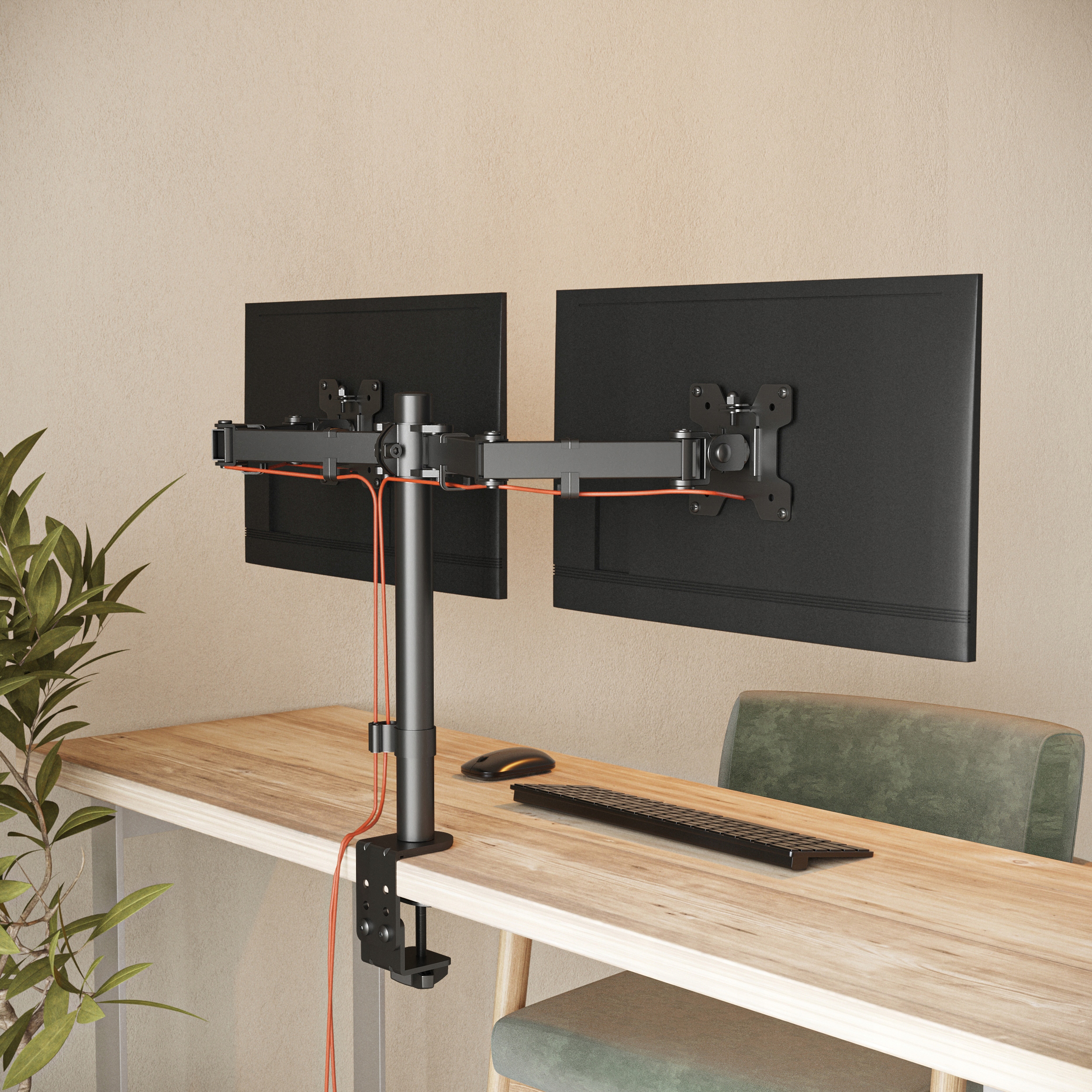 Наш настольный держатель монитора позволяет удобно использовать два ЖК-монитора одновременно. Подставка совместима с мониторами с диагональю 10–29 дюймов и позволяет пользователю точно регулировать положение экрана. Благодаря этому вы можете легко изменить высоту, угол и ориентацию одного или двух мониторов.