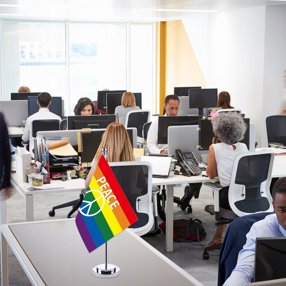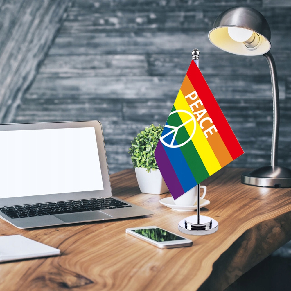 Настільний прапор із веселковим знаком миру Невеликий райдужний прапор із металом