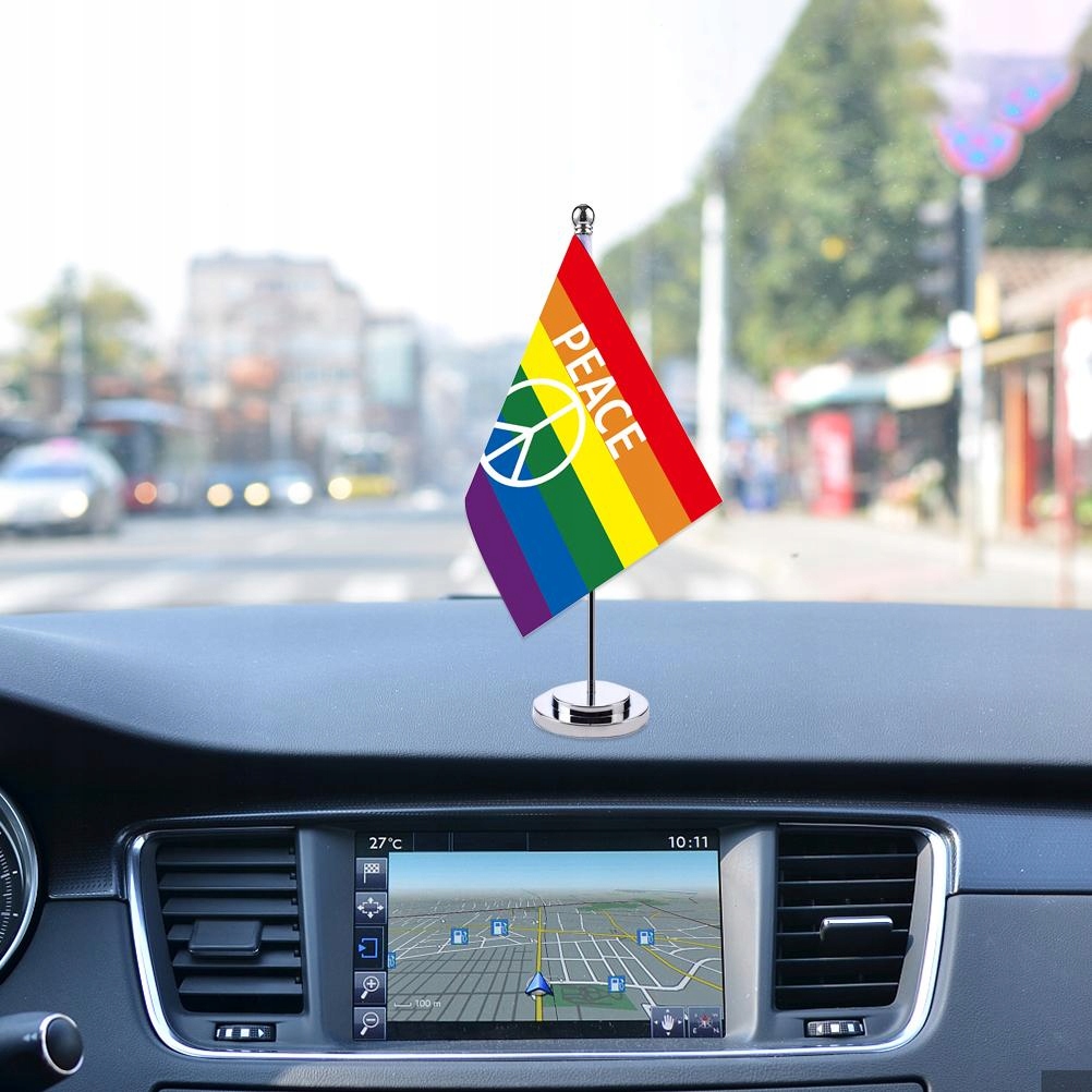 Радужный знак мира, настольный флаг, маленький мини-радужный флаг с металлическим основанием, настольный флаг, украшение автомобиля, рождественские украшения