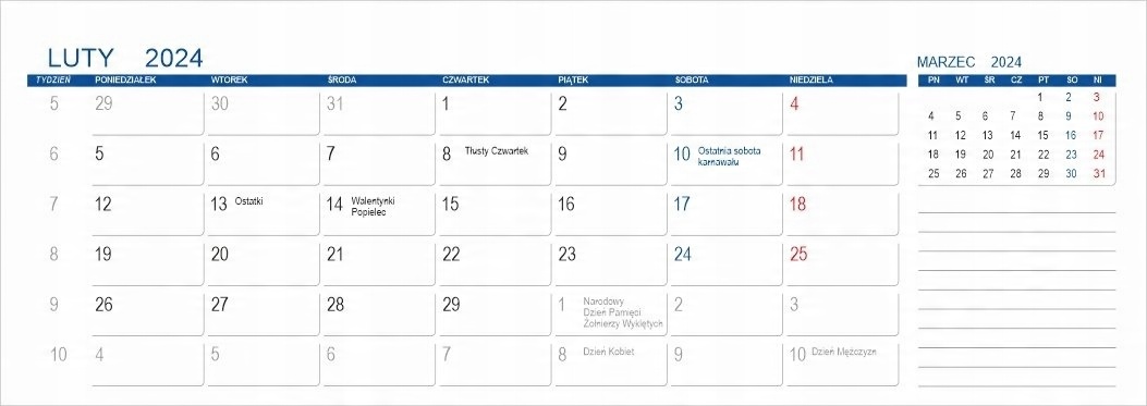 Размеры страниц в календаре: 29,7 х 10,5 см
