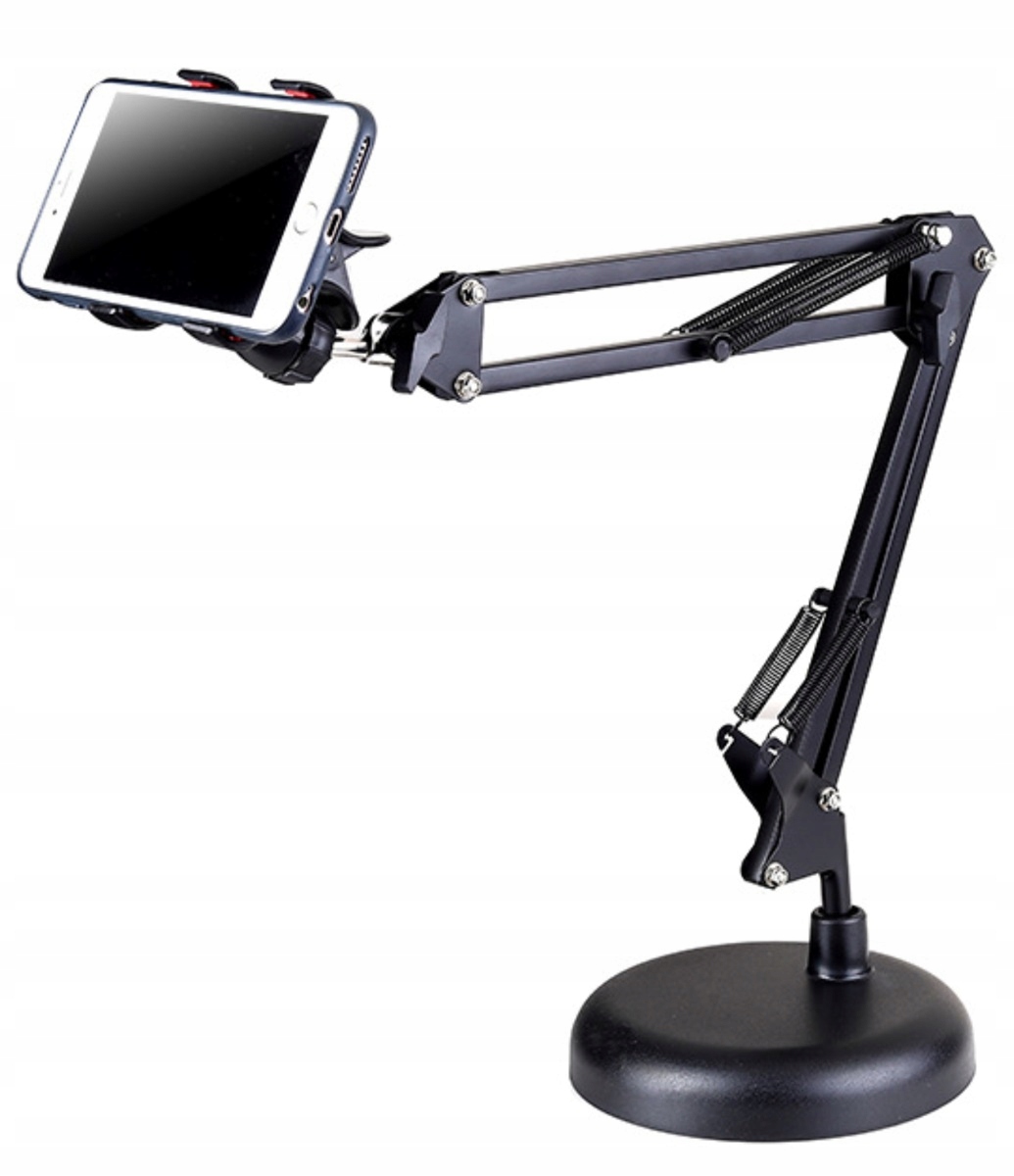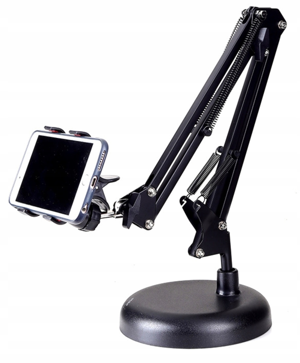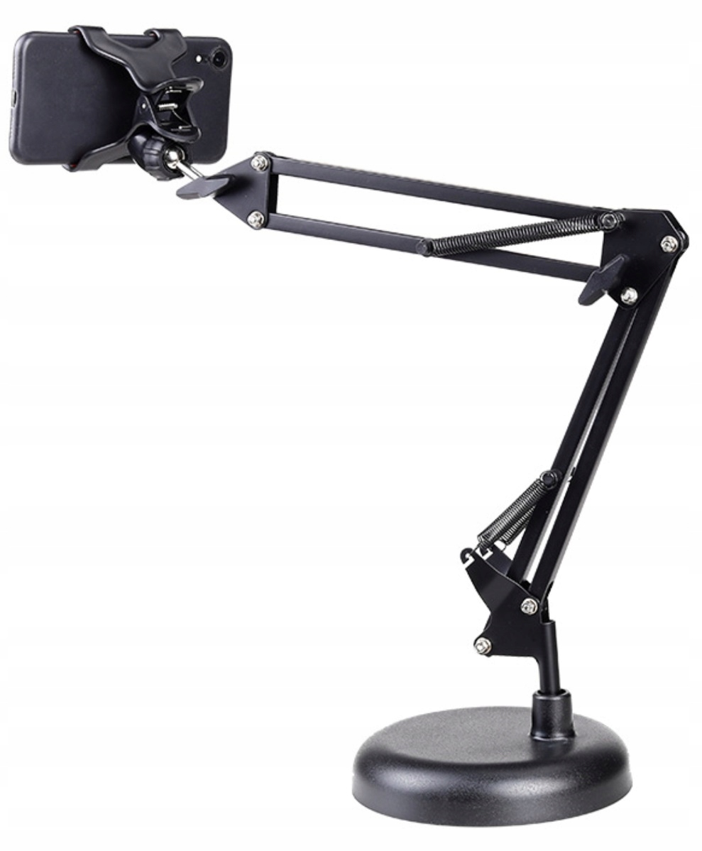 - ✅Полный комплект: В комплект входит настольный штатив для смартфона, металлическая круглая подставка с грузом и держатель телефона. Это все, что вам нужно, чтобы начать свободно пользоваться телефоном, не используя рук.