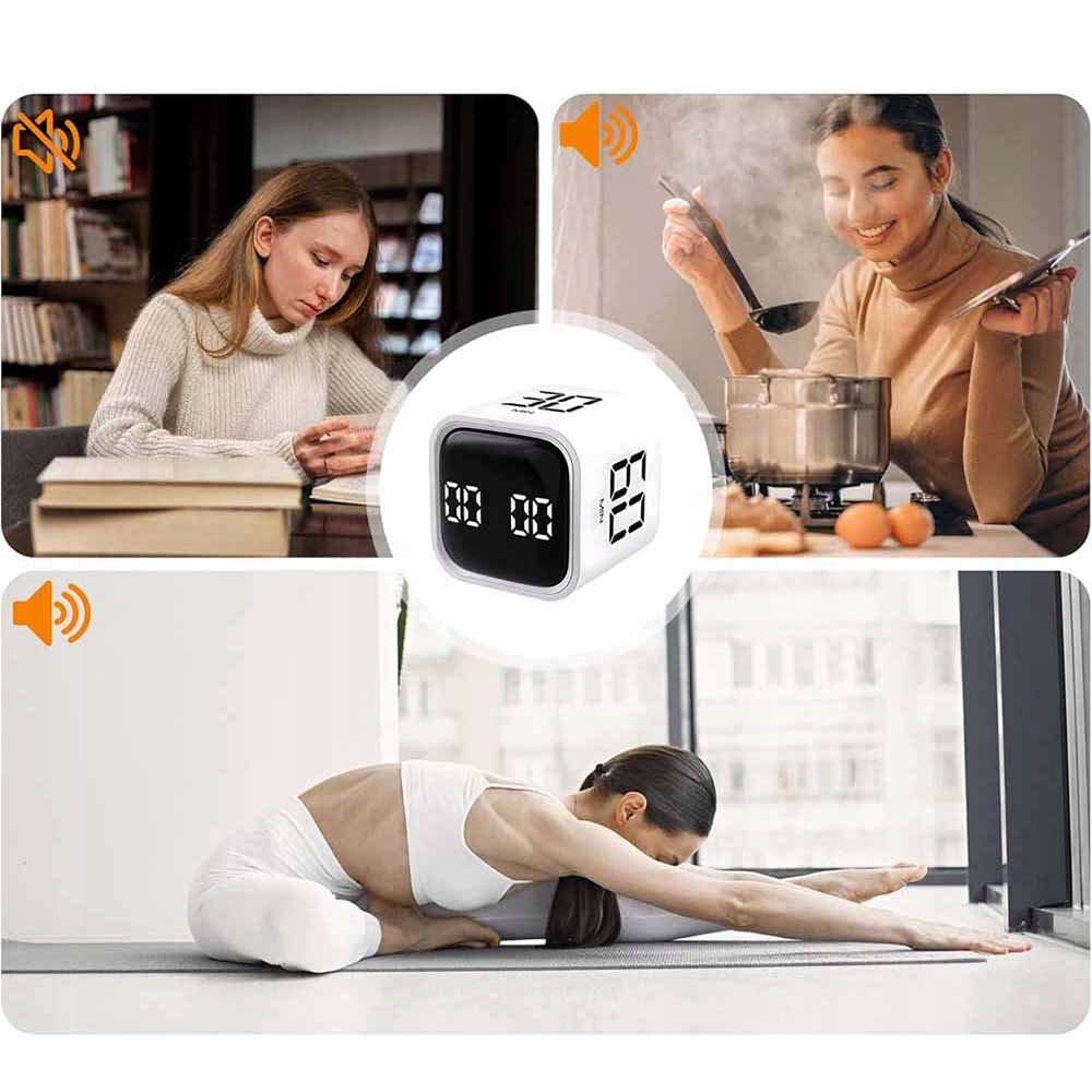 Кубический таймер с гравитационным датчиком подходит для различных применений, таких как офис, работа, встречи, дети, обучение, чтение, спорт, приготовление пищи и т. д. В гравитационном режиме цифры всегда остаются в правильном направлении благодаря направлению вращения, что повышает видимость и читаемость во время использования.