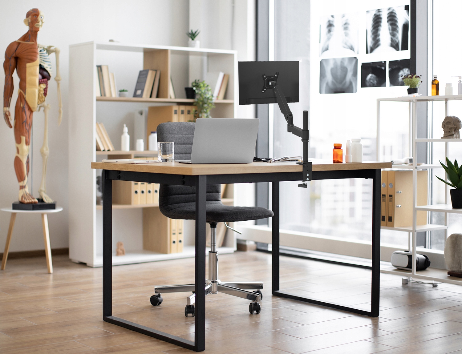 - ➡️двойной регулировка высоты ноутбука: на монтажной трубке и газовой пружине: до 53 см (считая от столешницы до центра VESA-пластины)