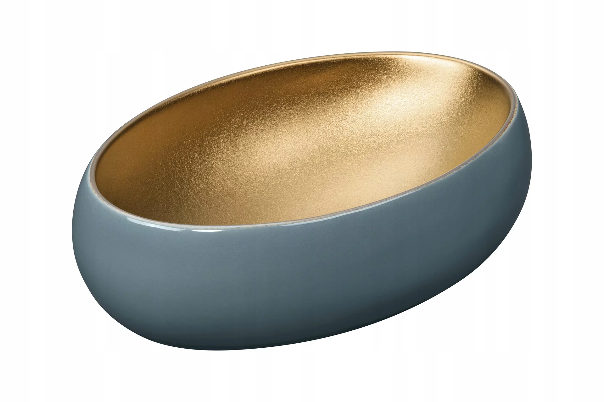 Внешняя часть умывальника выполнена в уникальном сером цвете, который в сочетании с матовым золотом внутри создает красивую композицию цветов. Такой вид умывальника хорошо сочетается с золотой или черной фурнитурой, что позволяет создать неподвластную времени ванную комнату.