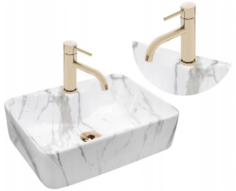 Мраморная раковина Kelly на столешнице + золотой смеситель Nexos