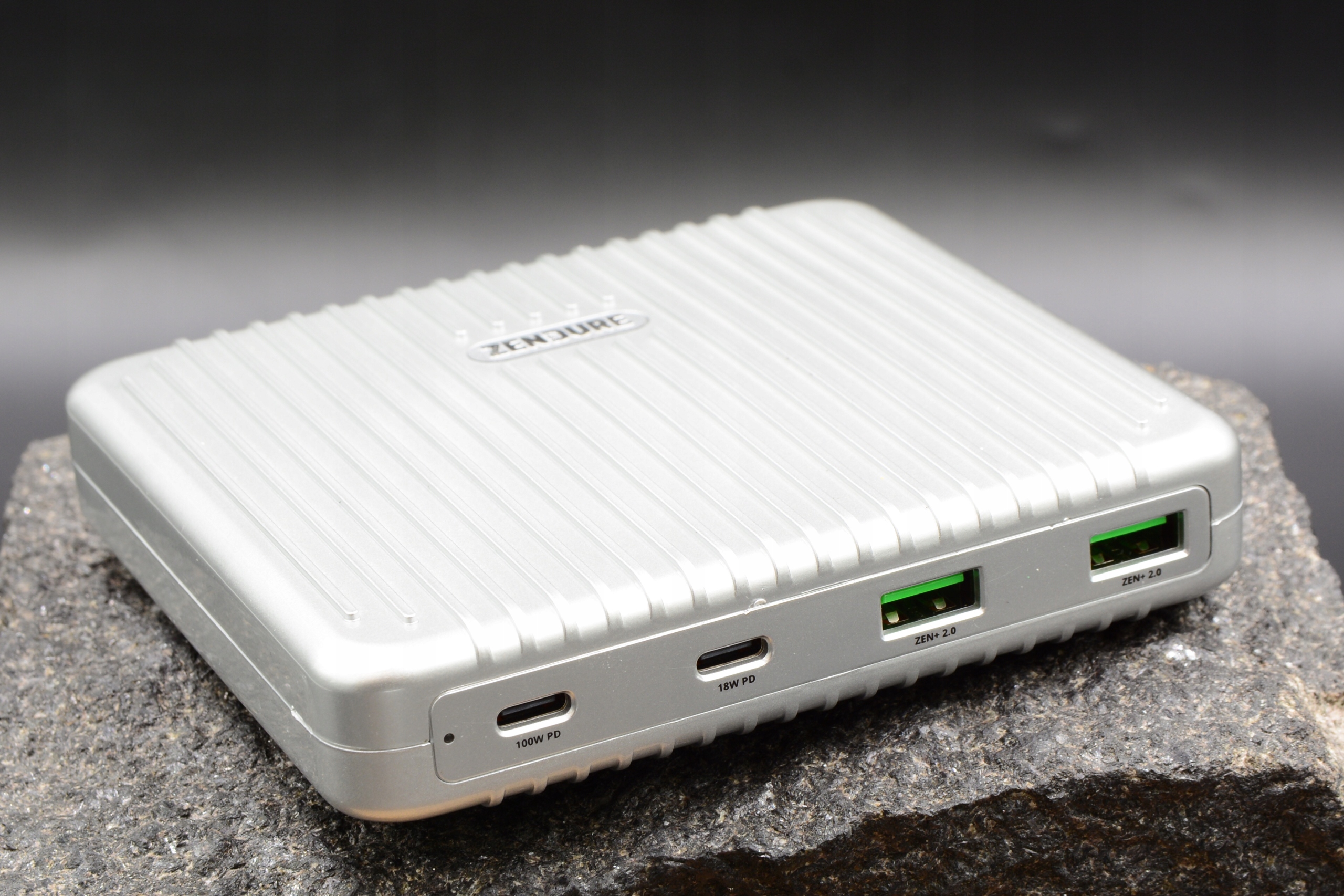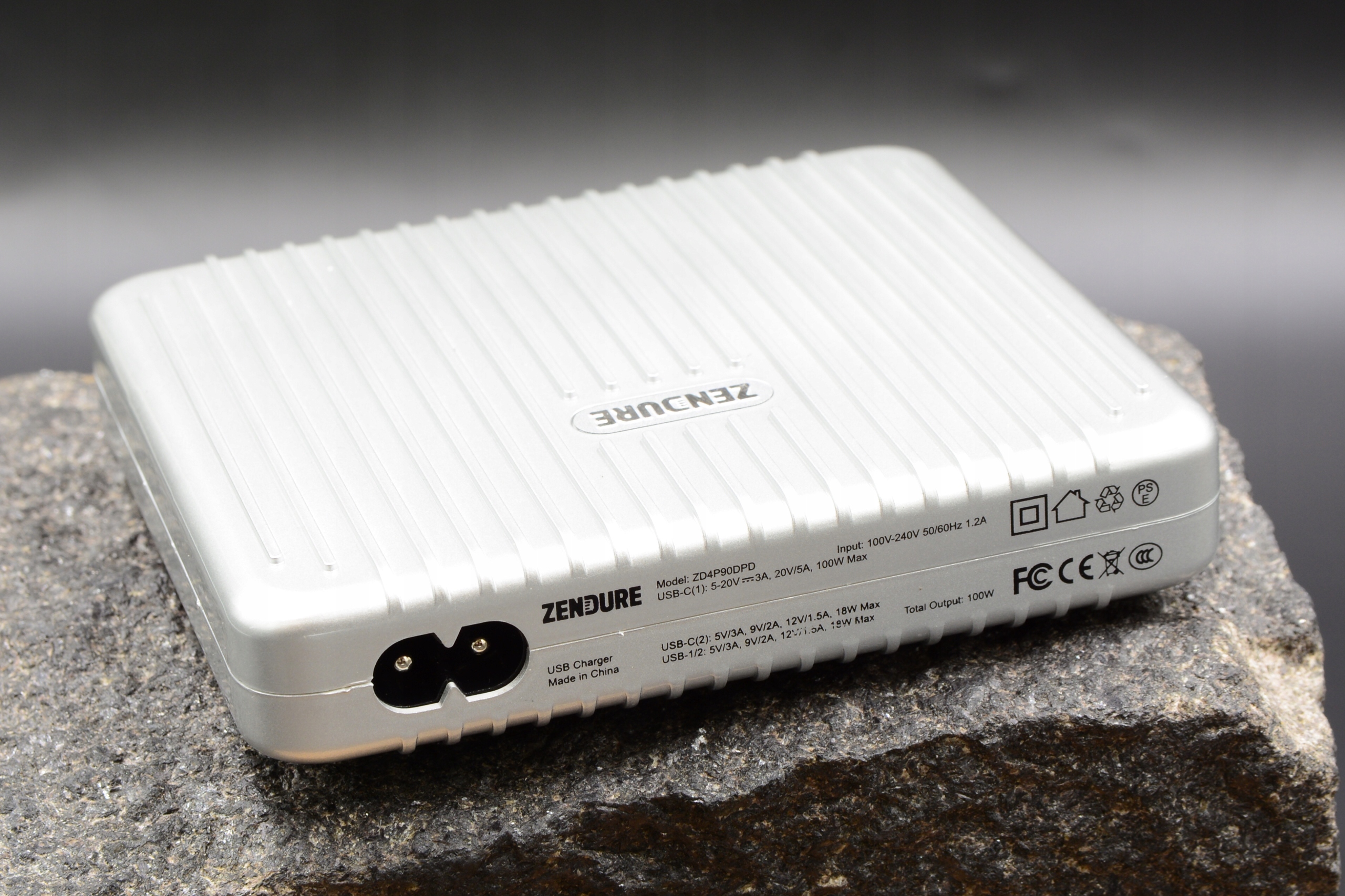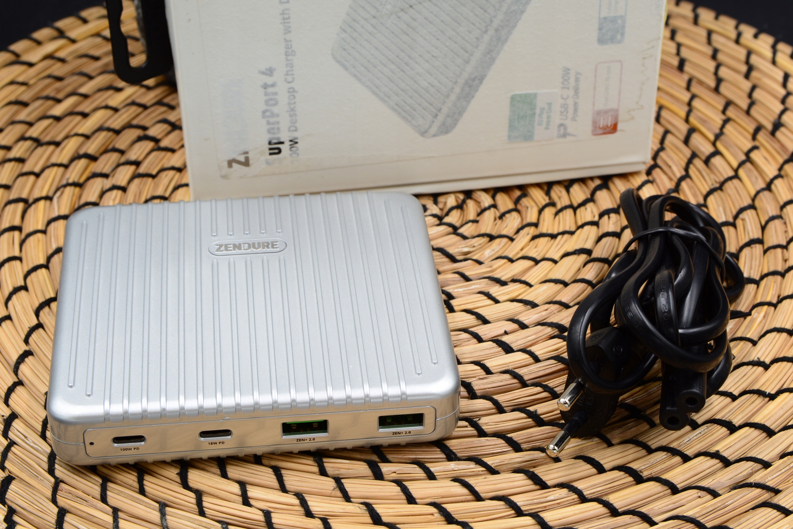 Поврежденное настольное зарядное устройство Zendure SuperPort 4 Dual USB-C (жесткое, 100 Вт с функцией быстрой зарядки для iPhone, MacBook, iPad, Android, Nintendo Switch и других, интеллектуальное защита безопасность, USB, USB-C), серебристый