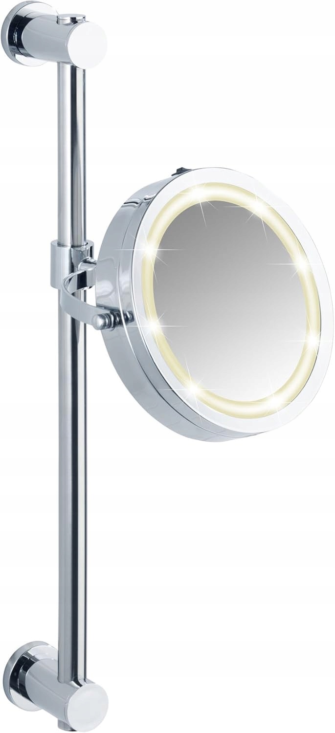 Круглое зеркало CAPRIимеет увеличение до 5 раз. Это позволяет очень точно выполнять многие мероприятия по уходу и благоустройству. Дополнительно зеркало имеет светодиодную подсветку, что обеспечивает качественный световой эффект с длительным сроком службы. Подсветку можно выключить или включить одной кнопкой. Конструкция ручки позволяет установить зеркало на смеситель душевой колонны.