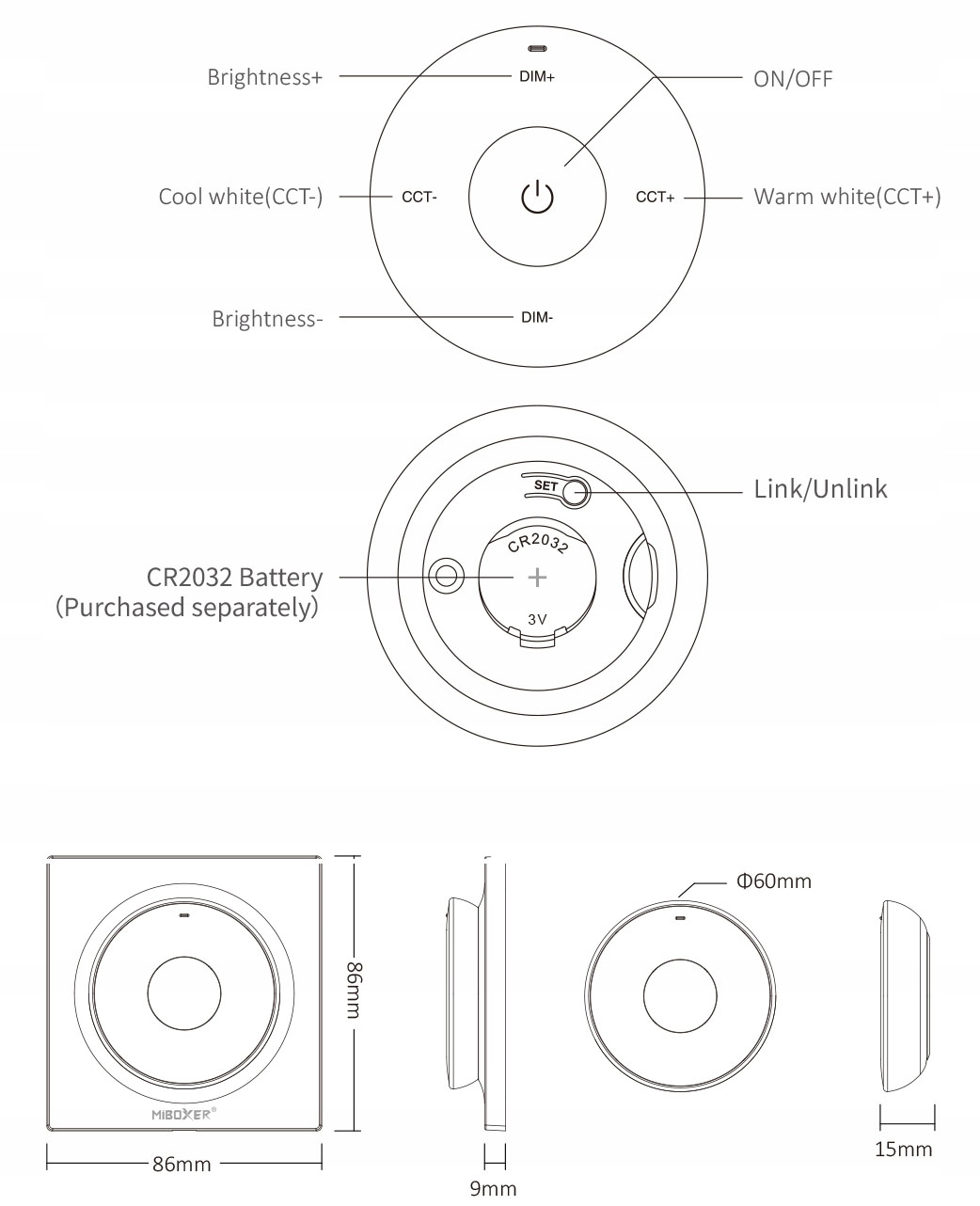 НАСТІННА ДИСТАНЦІЙНА ПАНЕЛЬ Світлодіодні стрічки MiLight K2B MONO CCT