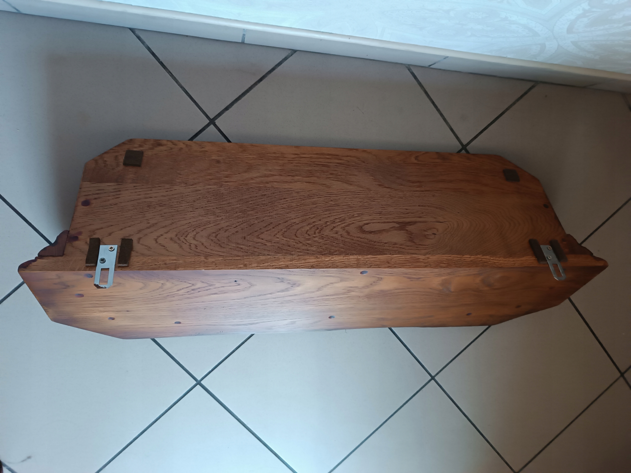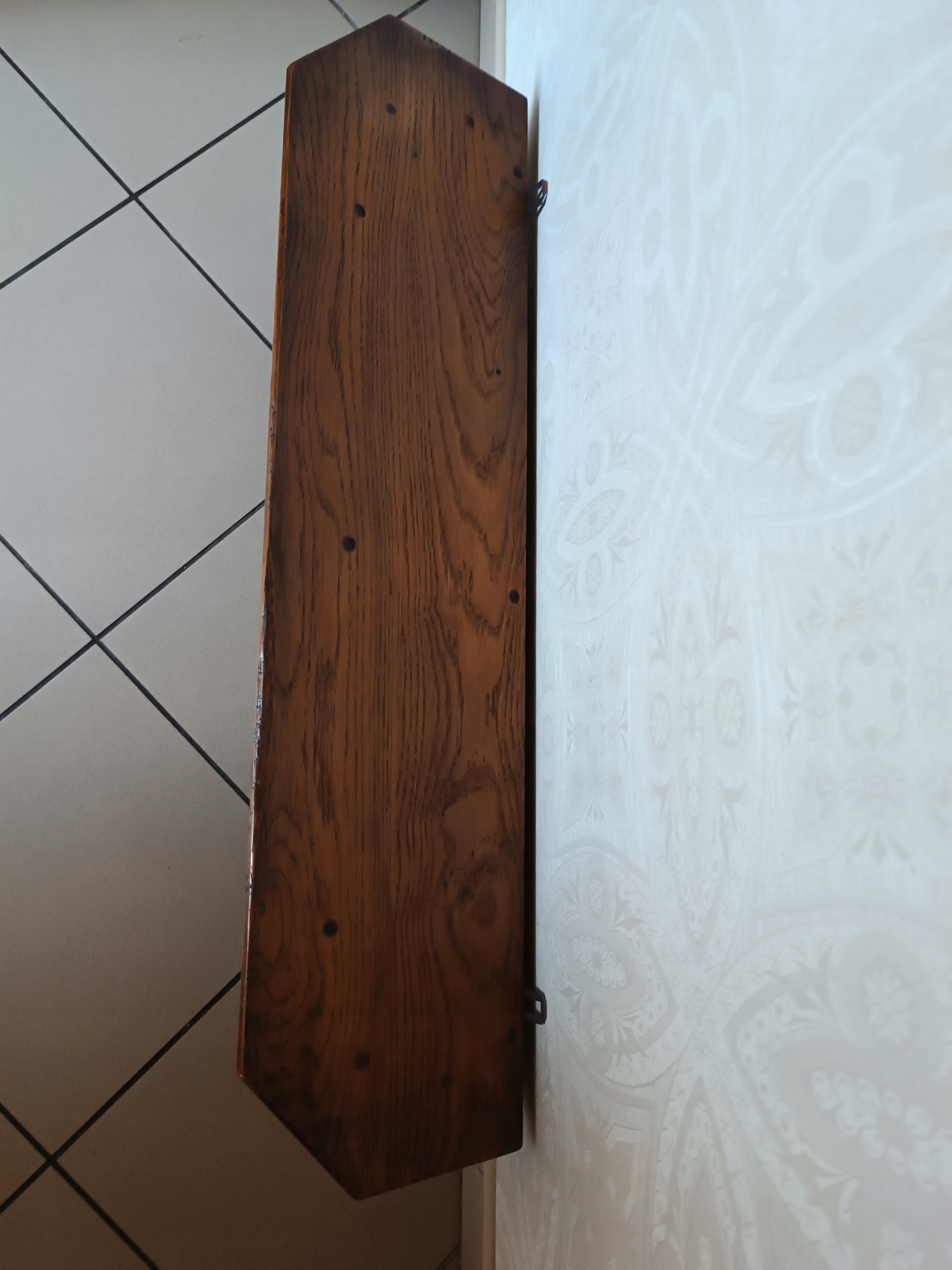 Настенная дубовая вешалка с латунными крючками и полкой.