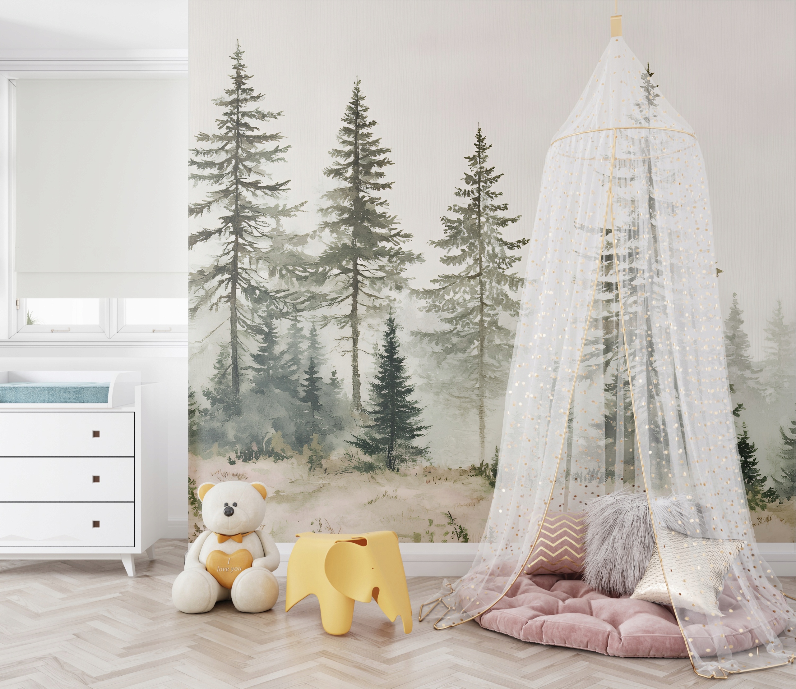 Настенная роспись для детей обои лесные лесные горы деревья пейзаж до размера