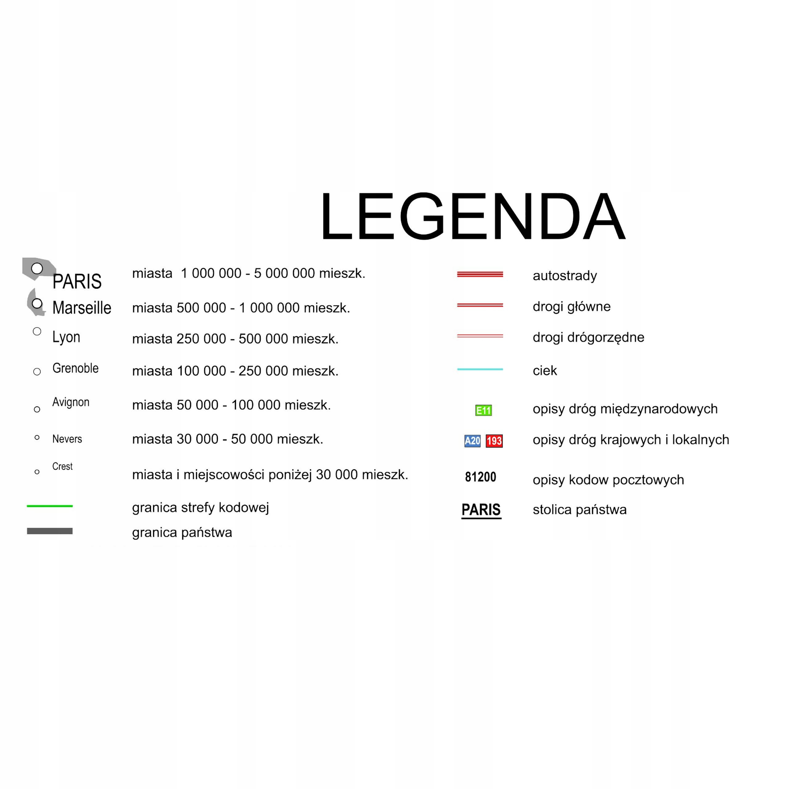 Карта Франции представляет собой исследование, не похожее ни на одно другое, доступное на рынке. Действующая во Франции система кодов, отмеченная определенной цифрой (например, 5), отображается одним и тем же цветом, несмотря на разброс кодов. Это исследование очень красочное и поэтому очень читабельное. Коды, начинающиеся с одной и той же цифры, отмечаются одним цветом. Кроме того, на карте присутствует базовая дорожная сеть, что позволяет легко объезжать платные дороги и перенаправлять водителя на бесплатные маршруты.