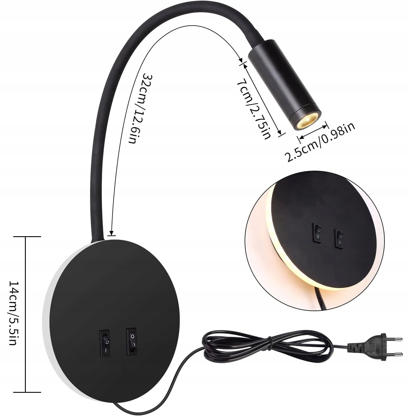 🔷🔷 Эластичная лампа для чтения с 2 кнопками переключателя】: 2 Источники света, 3 Вт + 7 Вт, открытый отдельным выключателем, теплый белый свет позволяет вам чувствовать себя расслабленным и удобным. 【Пластик】 Весь корпус прикроватной лампы изготовлен из алюминия, долговечного, с превосходной коррозионной стойкостью и никогда не изменяющим цвет, с высококачественным трансформатором, напряжением AC 85V-265V. Вращение 360 ° длиной 35 см, которое можно легко перемещать к желаемому углу освещения. Лампа для чтения не освещает всю спальню. Лампа для чтения никогда не будет беспокоить других членов семьи.