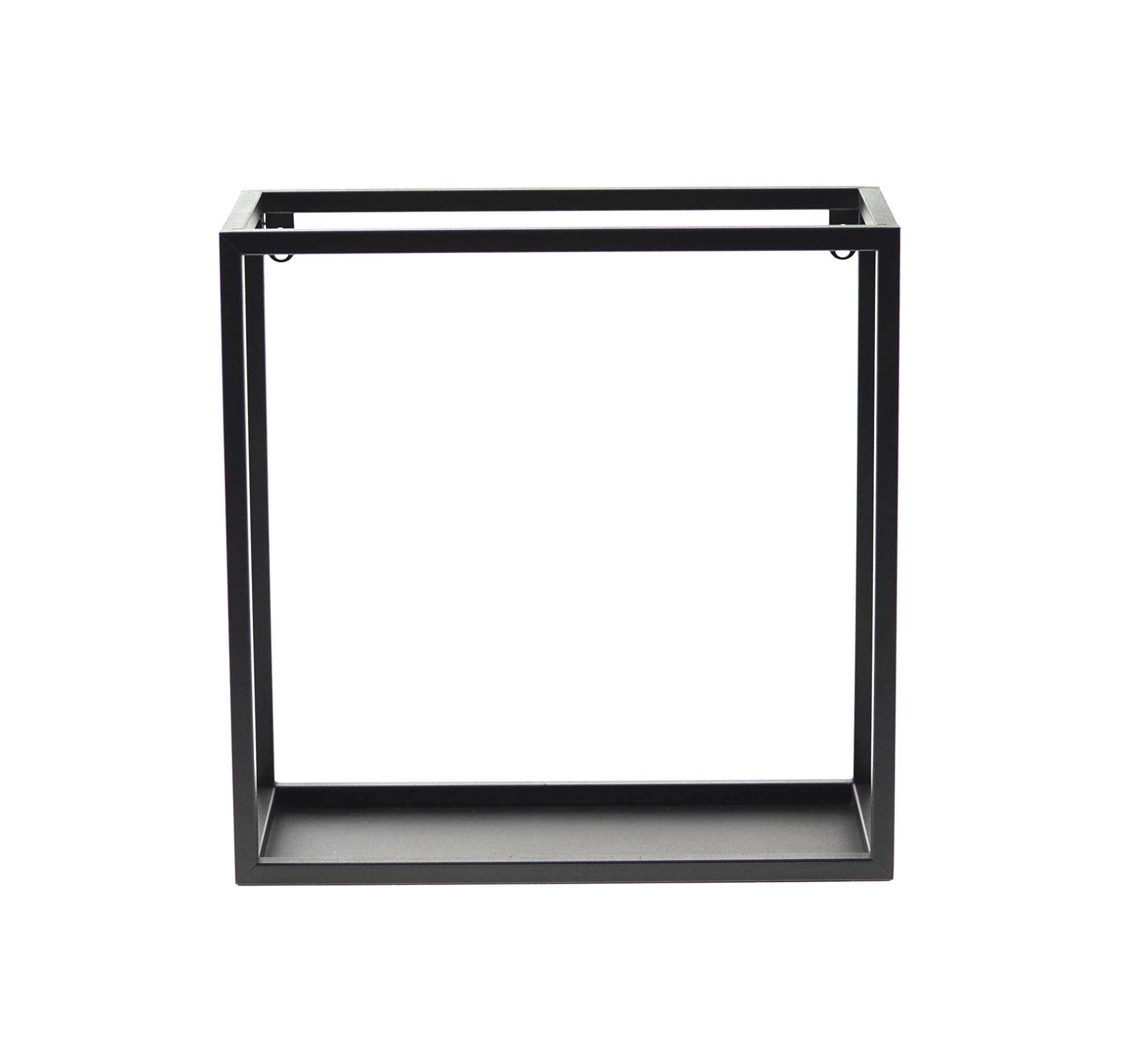 - Каркас полки изготовлен из металлического профиля 12x12 мм и покрашен порошковой краской в черный матовый цвет. b> li>