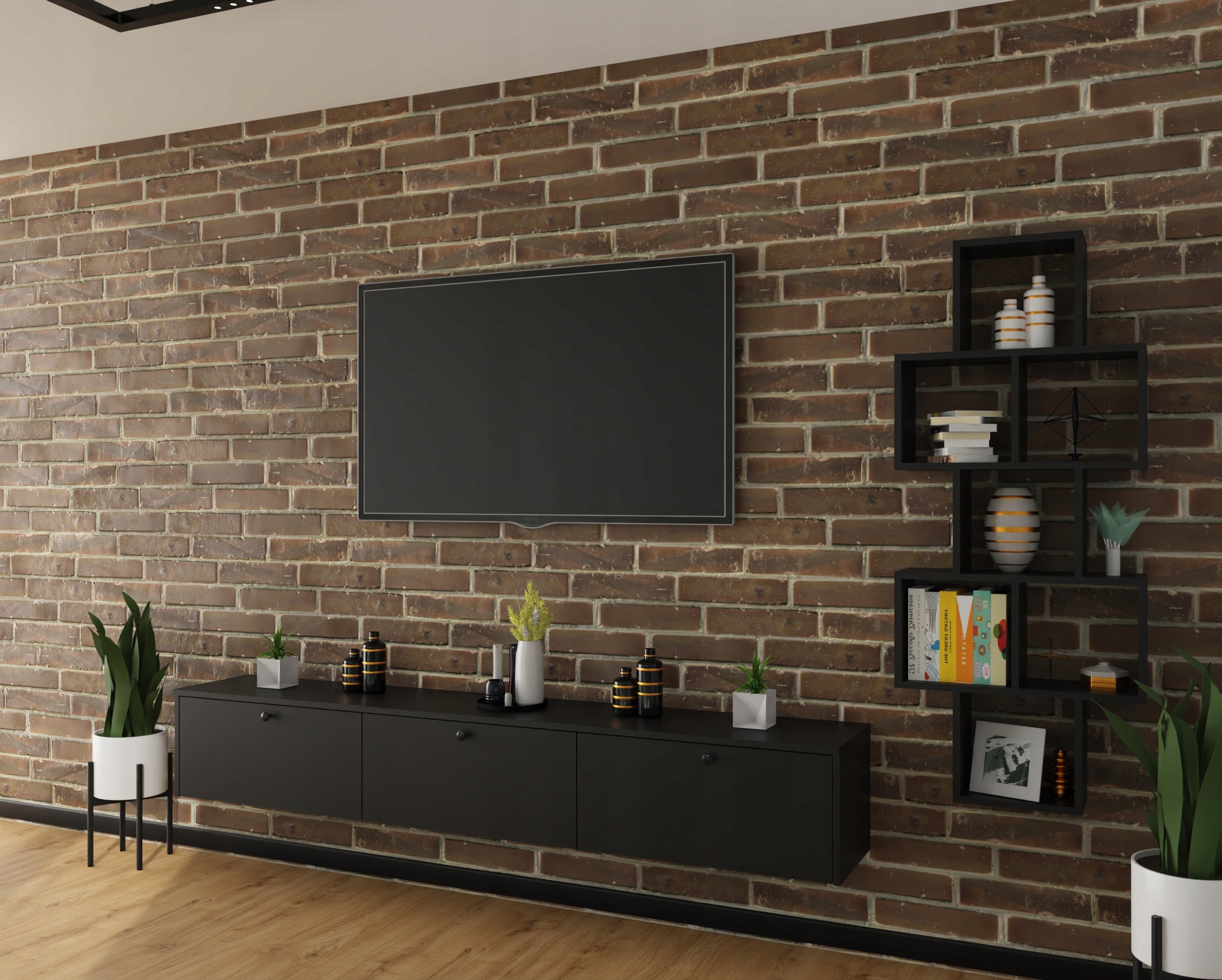 Подвесная полка-книжный шкаф для гостиной, 143 см, анета черная