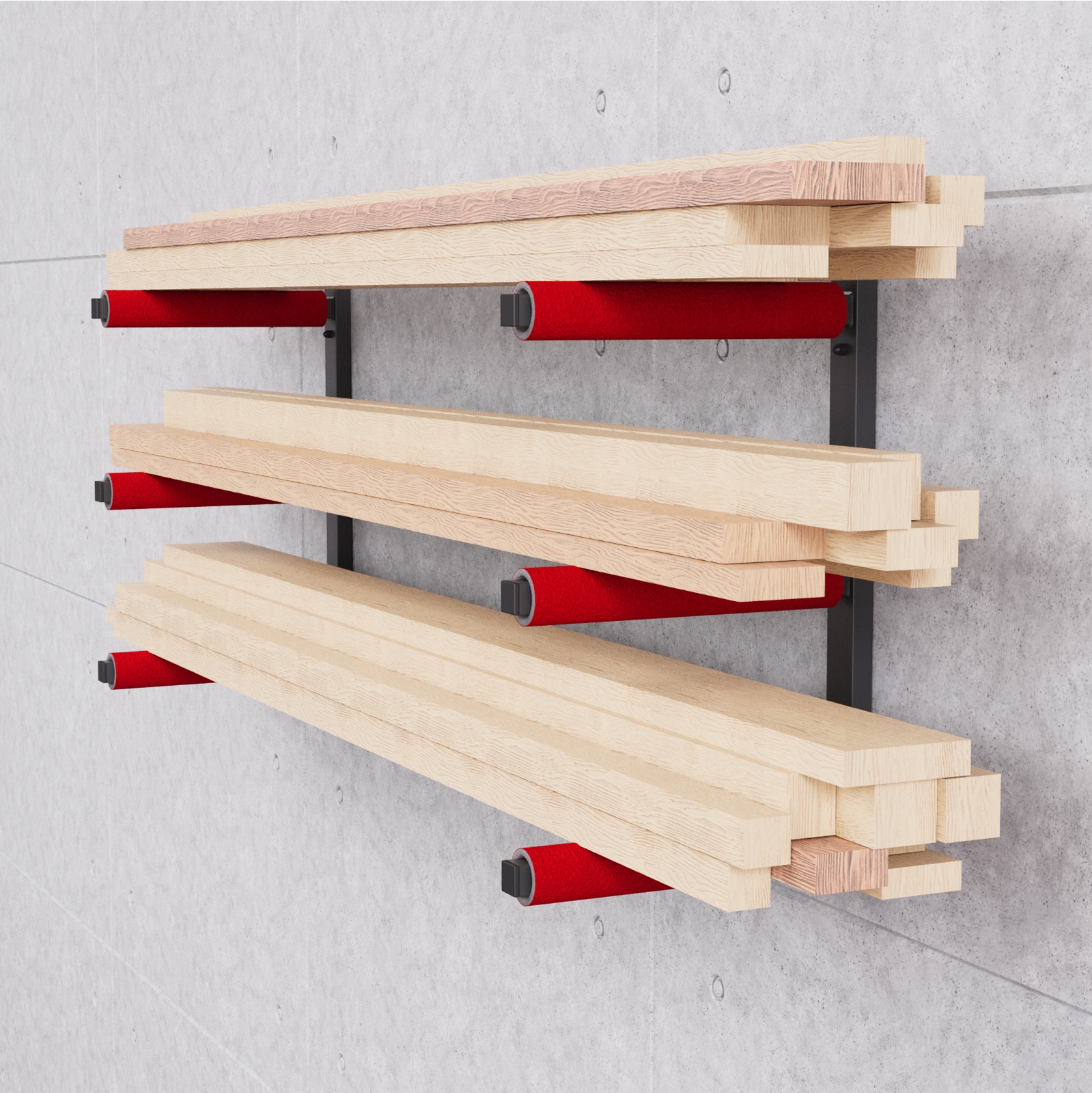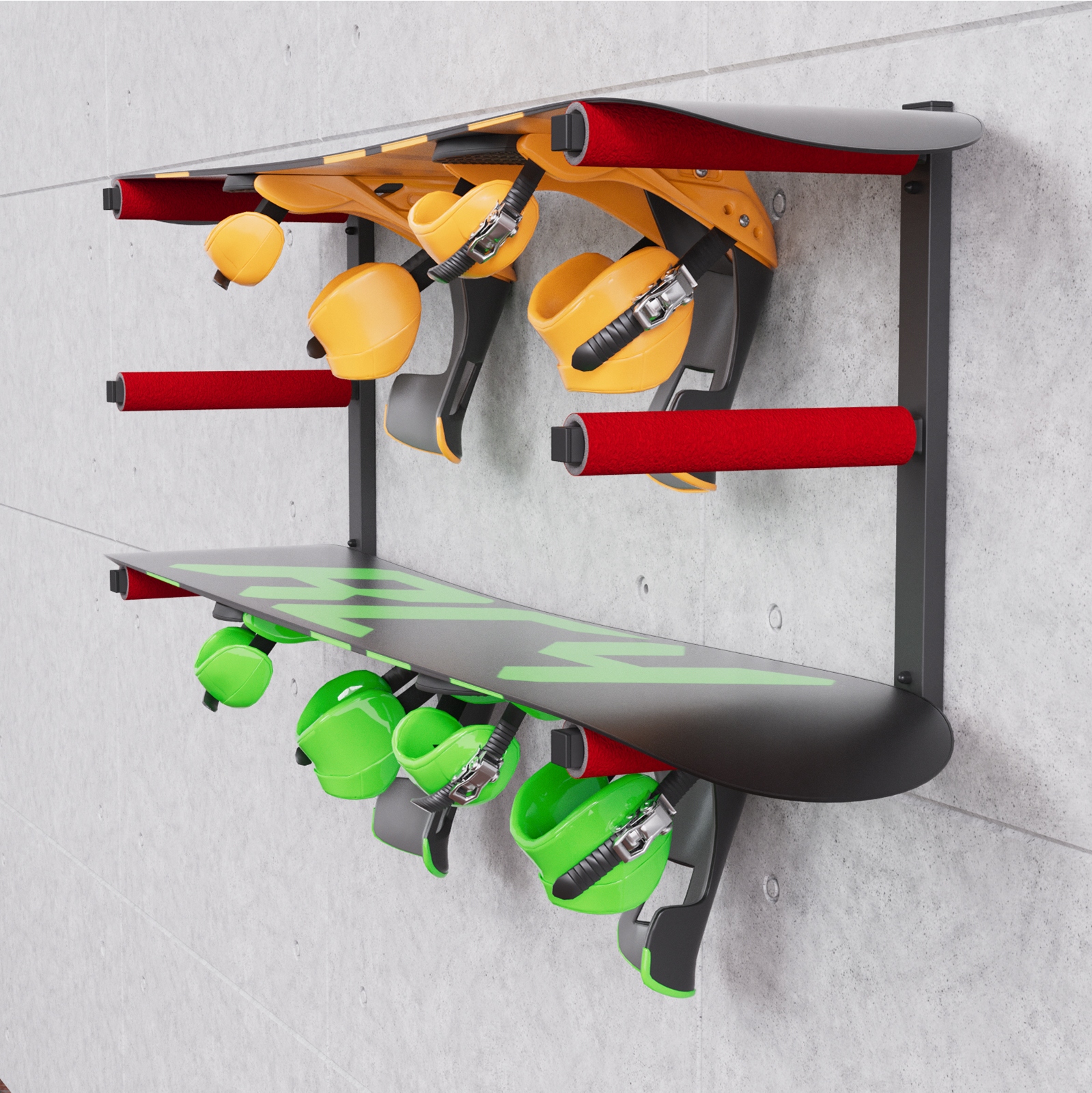 Прочное тройное настенное крепление обеспечивает надежное крепление и позволяет безопасно хранить инструменты, лыжи, сноуборды, лестницы, трубы, строительные инструменты и садовый инвентарь.