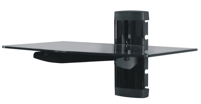Универсальная стеклянная настенная полка, может использоваться в качестве основания для оборудования RTV - DVD-плееров, видеоплееров, спутниковых декодеров, игровых приставок и т.п.